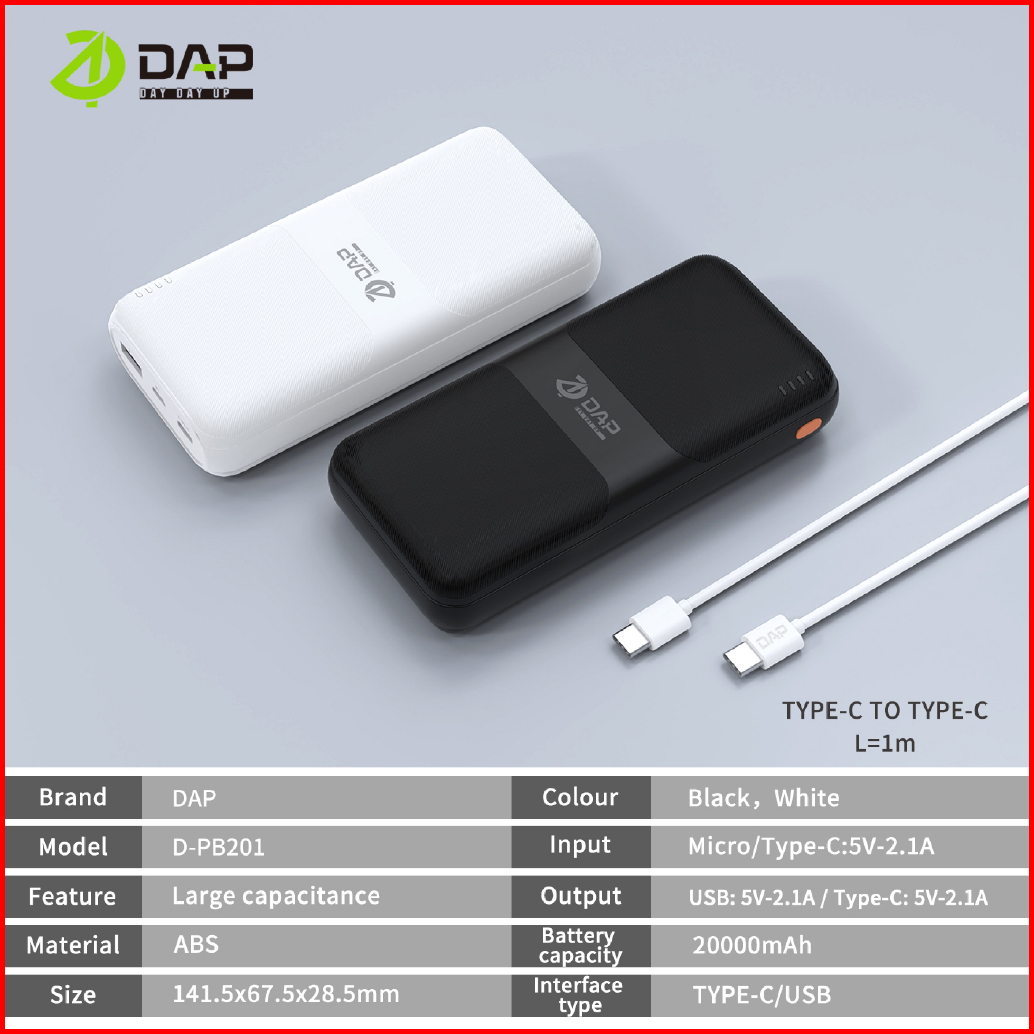 Powerbank Dap 20000mah D-pb201 2.1a Dual Input Port Type C Micro Usb Powerbank Bertenaga Large Capacity - Garansi Resmi