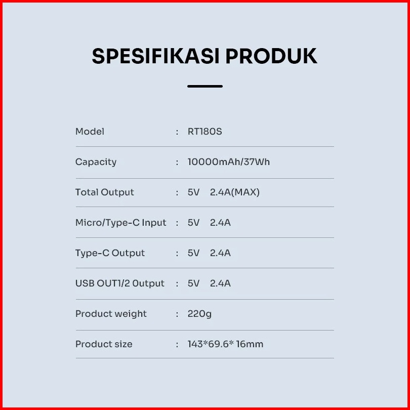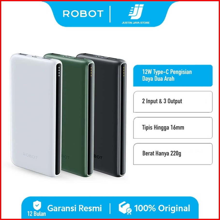 Robot Powerbank 10000mah 3 Output Dual Input Type-c Power Bank Rt180s Fast Charging 12w Android Iphone - Garansi 1 Tahun