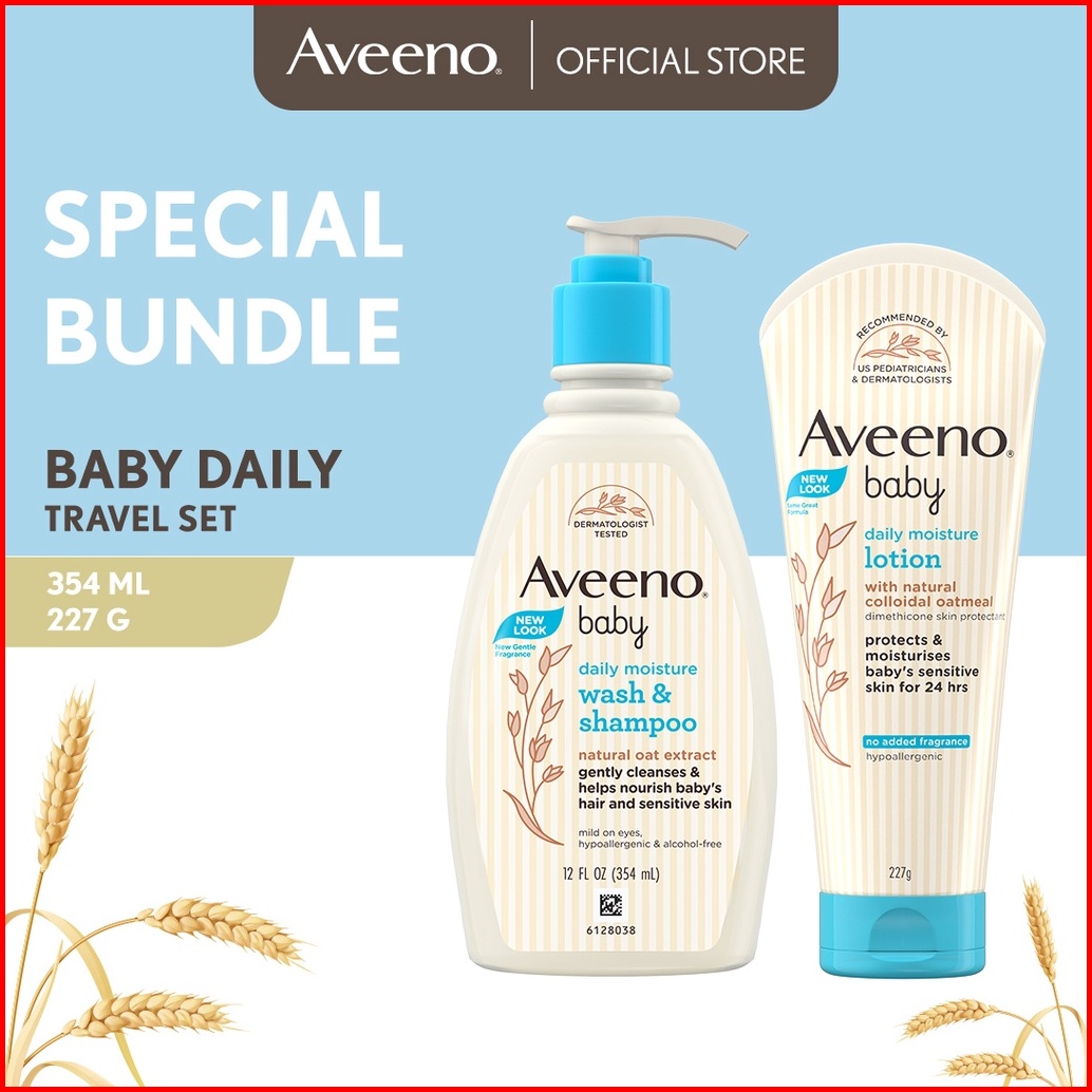 Aveeno Baby Daily Moisture Set Sabun Sampo 354ml Losion Pelembap Bayi 227g Untuk Kulit Kering