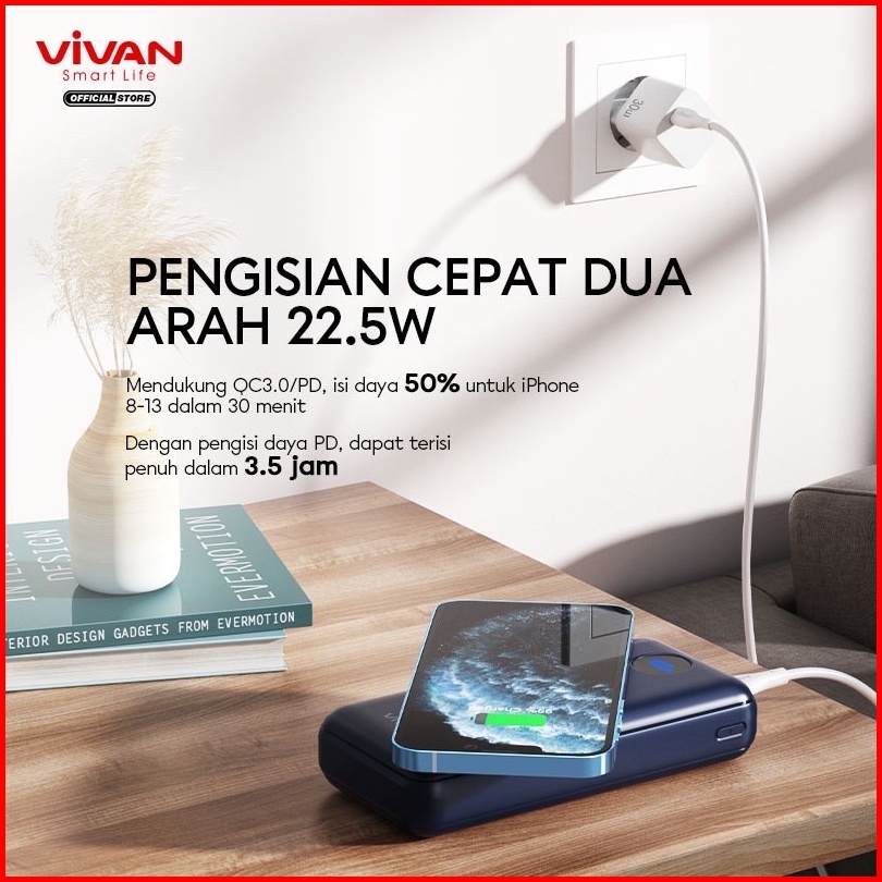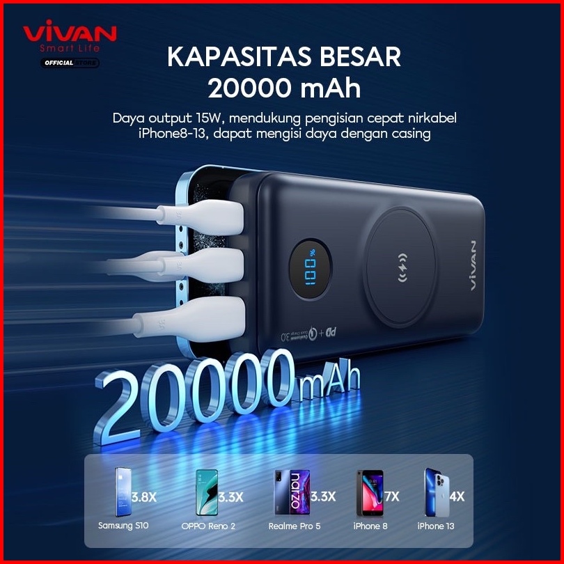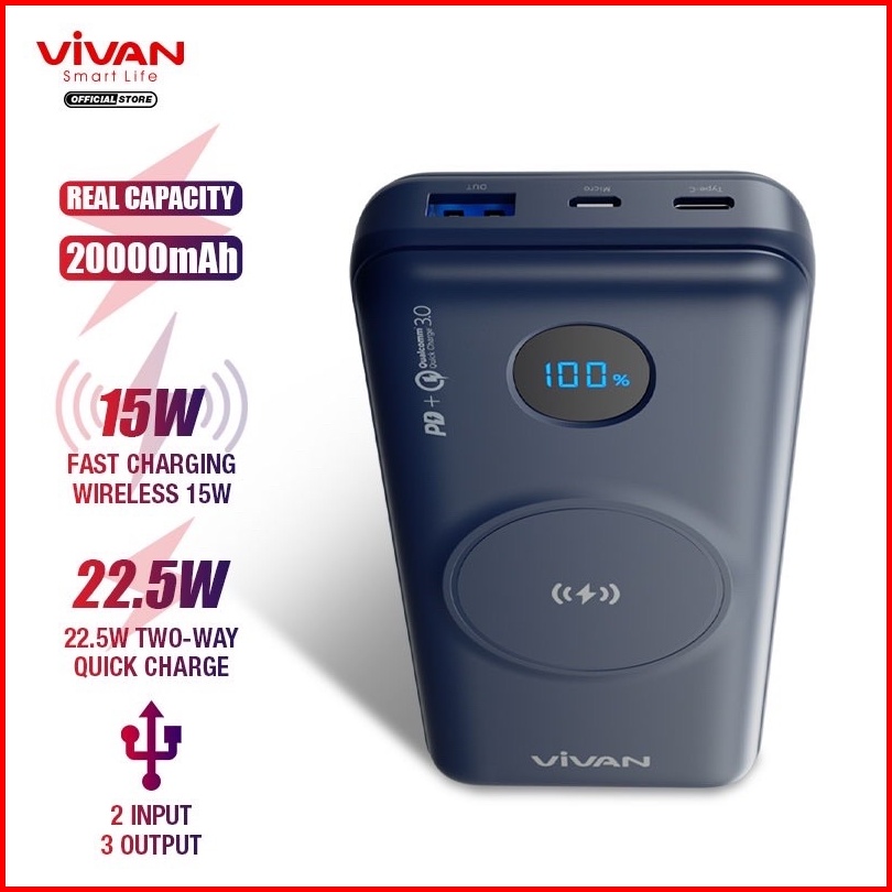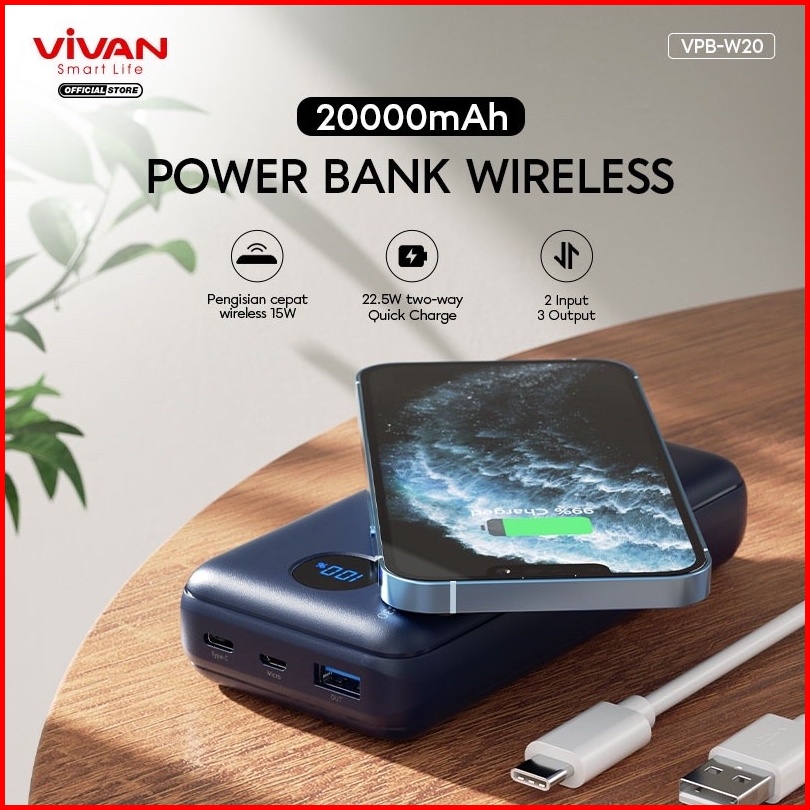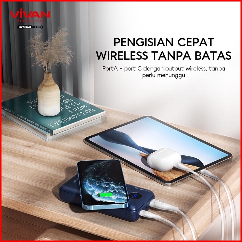 Vivan Vpb-w20 Powerbank 20000 Mah Wireless 3 Output Fast Charging 15w Qc3.0 Pd Support Smartphone All Type Garansi Origi