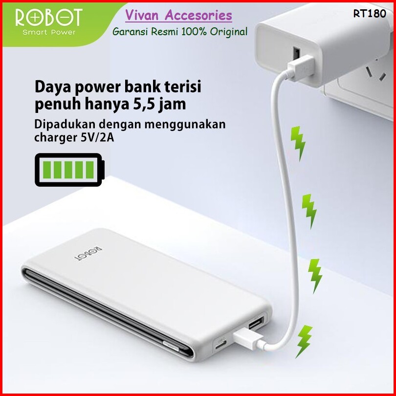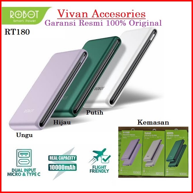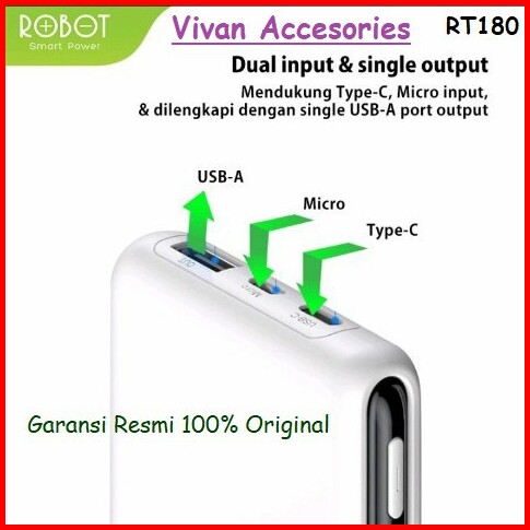 Powerbank Power Bank Robot Rt180 Rt12 10000mah Dual Input Type C Micro