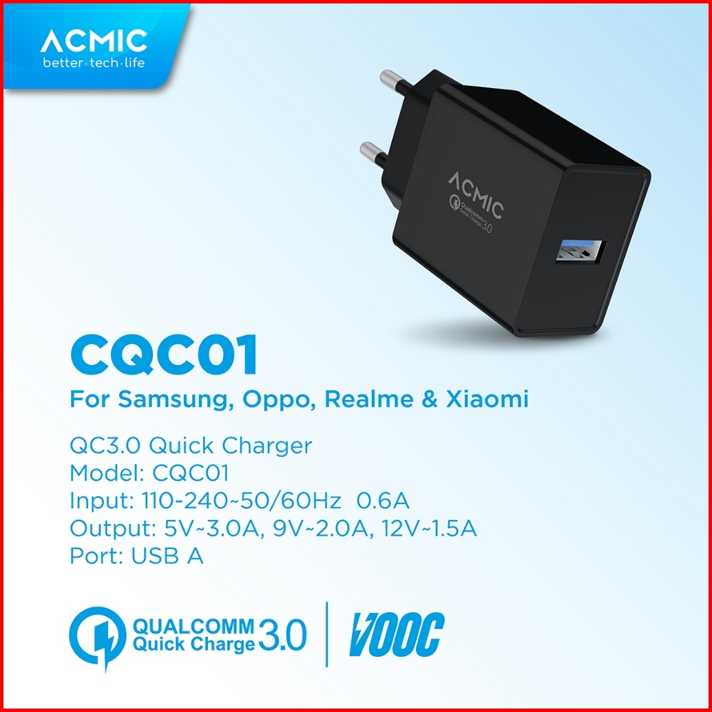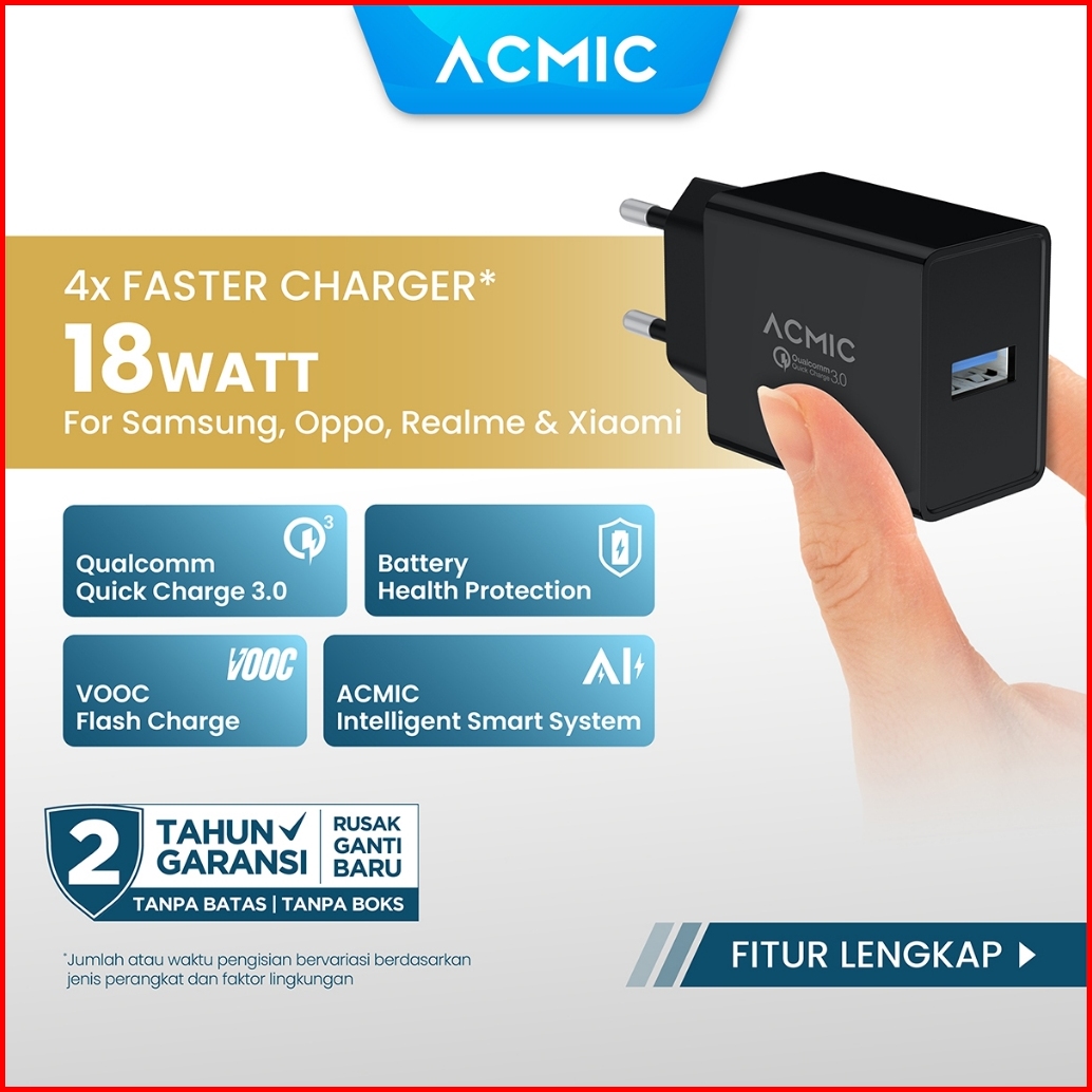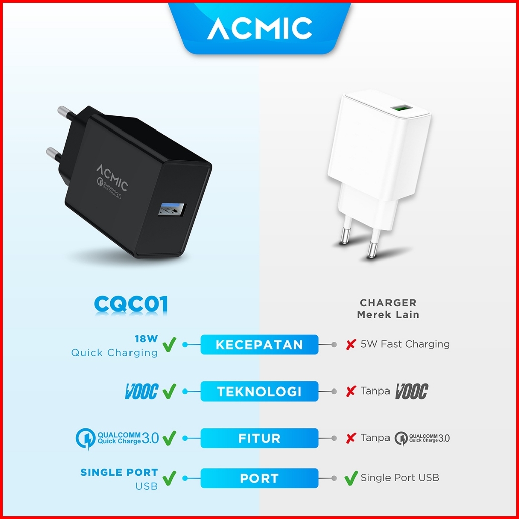 Acmic Cqc01 Usb 18w Kepala Charger Fast Charging Adaptor