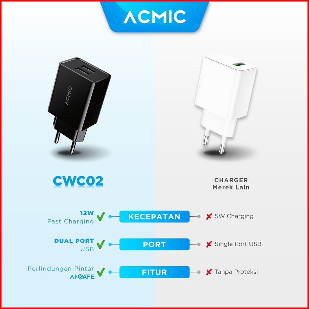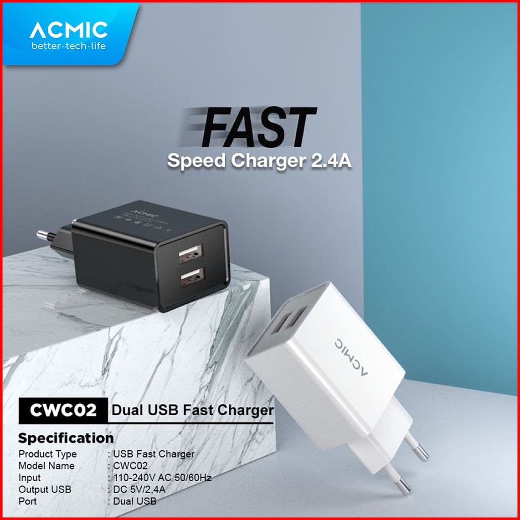 Acmic Cwc02 Dual Usb 12w Kepala Charger Fast Charging Adaptor