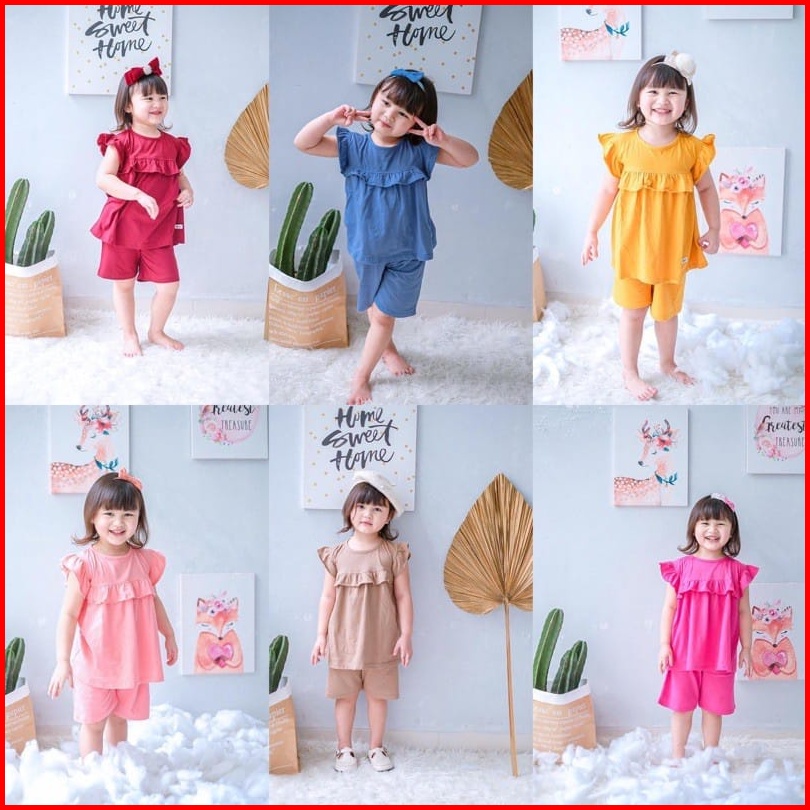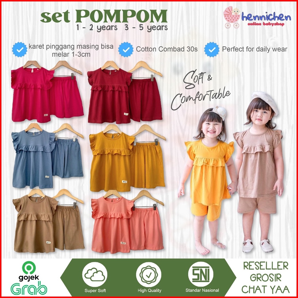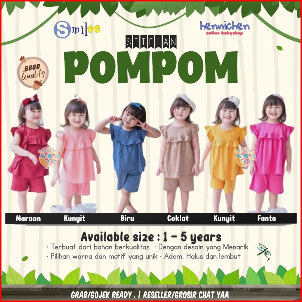 Promo 9.9 Setelan Anak Kaos Smilee Pompom Size 1-5tahun Setelan Anak Perempuan Lucu Setelan Anak Perempuan