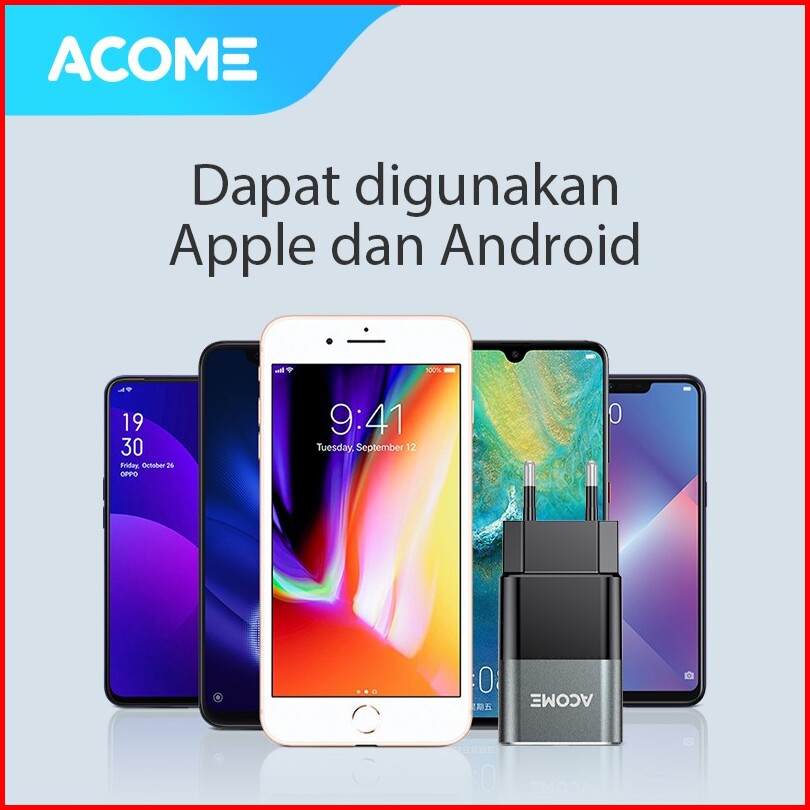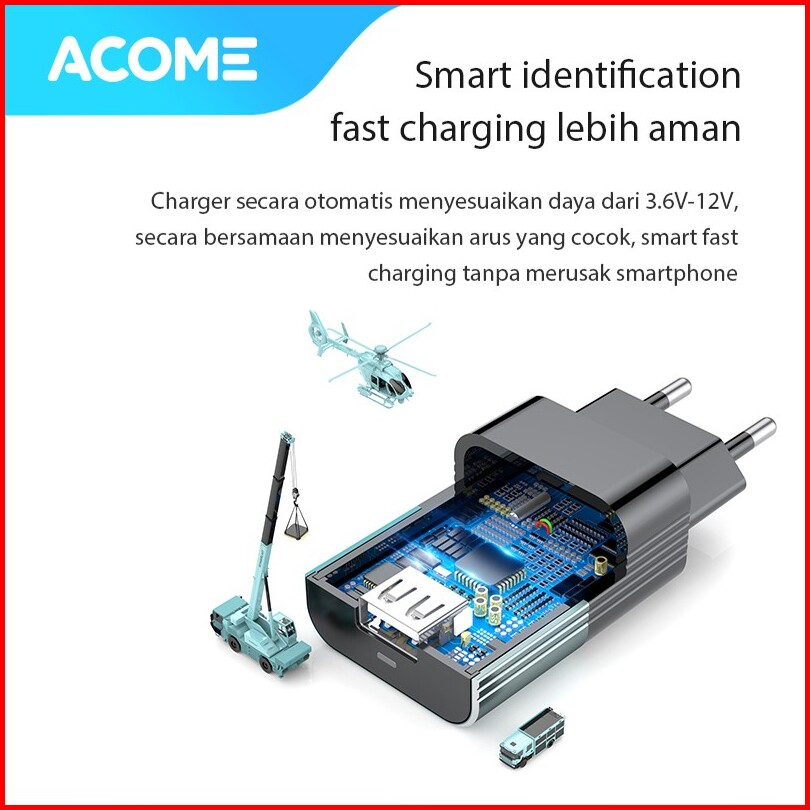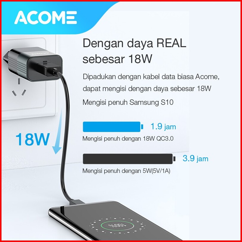 Acome Charger Original 3a Qc3.0 Fast Charging Micro Usb Type-c Iphone Garansi Resmi 1 Thn Ac01