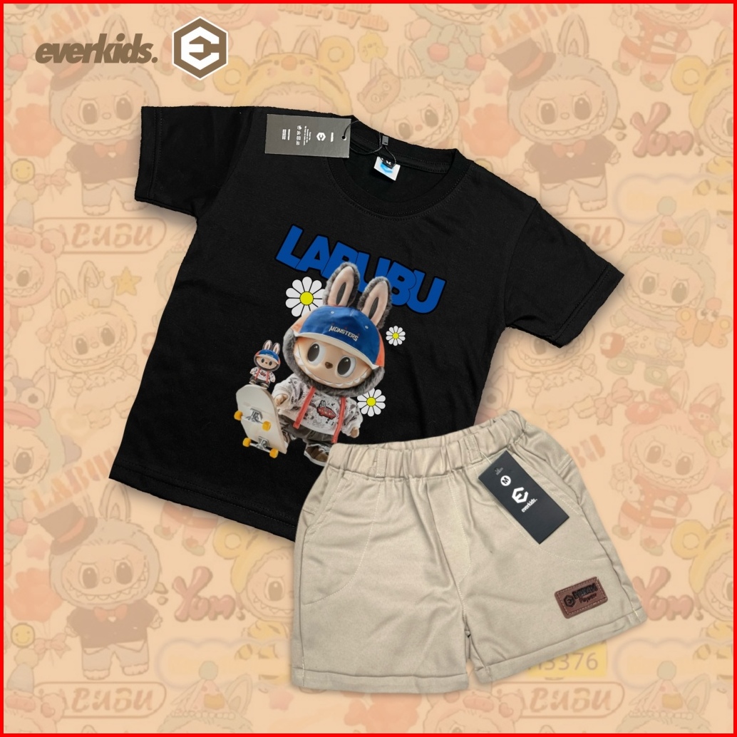 Everkids Setelan Kaos Anak 1-6 Thn Sablon Keren Kaos Labubu Kd 50