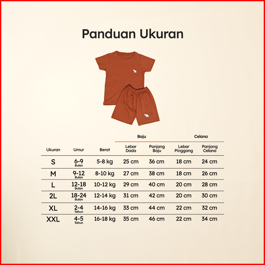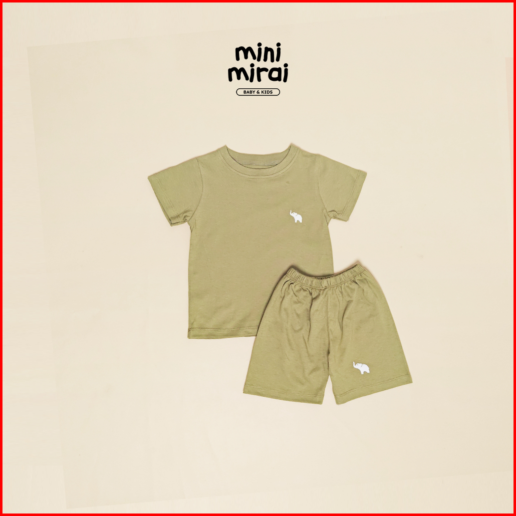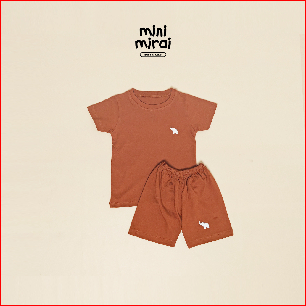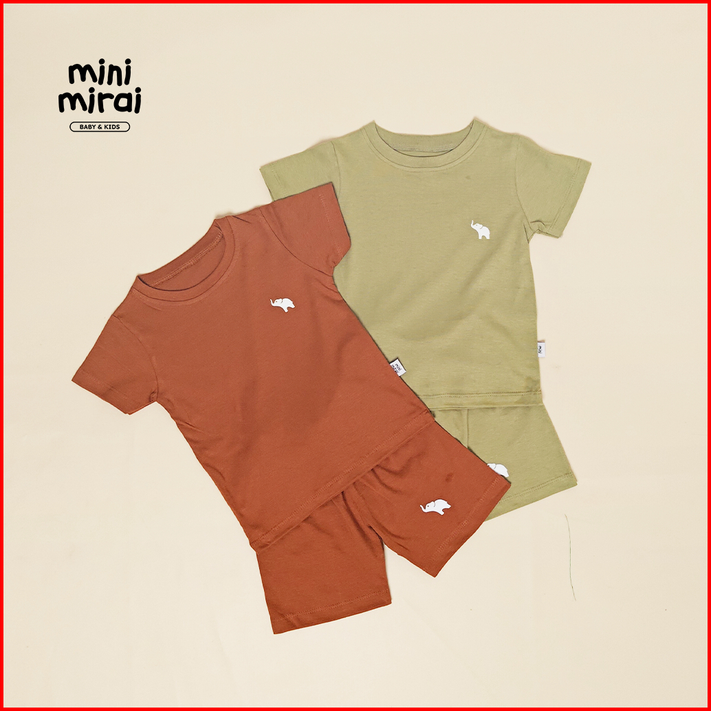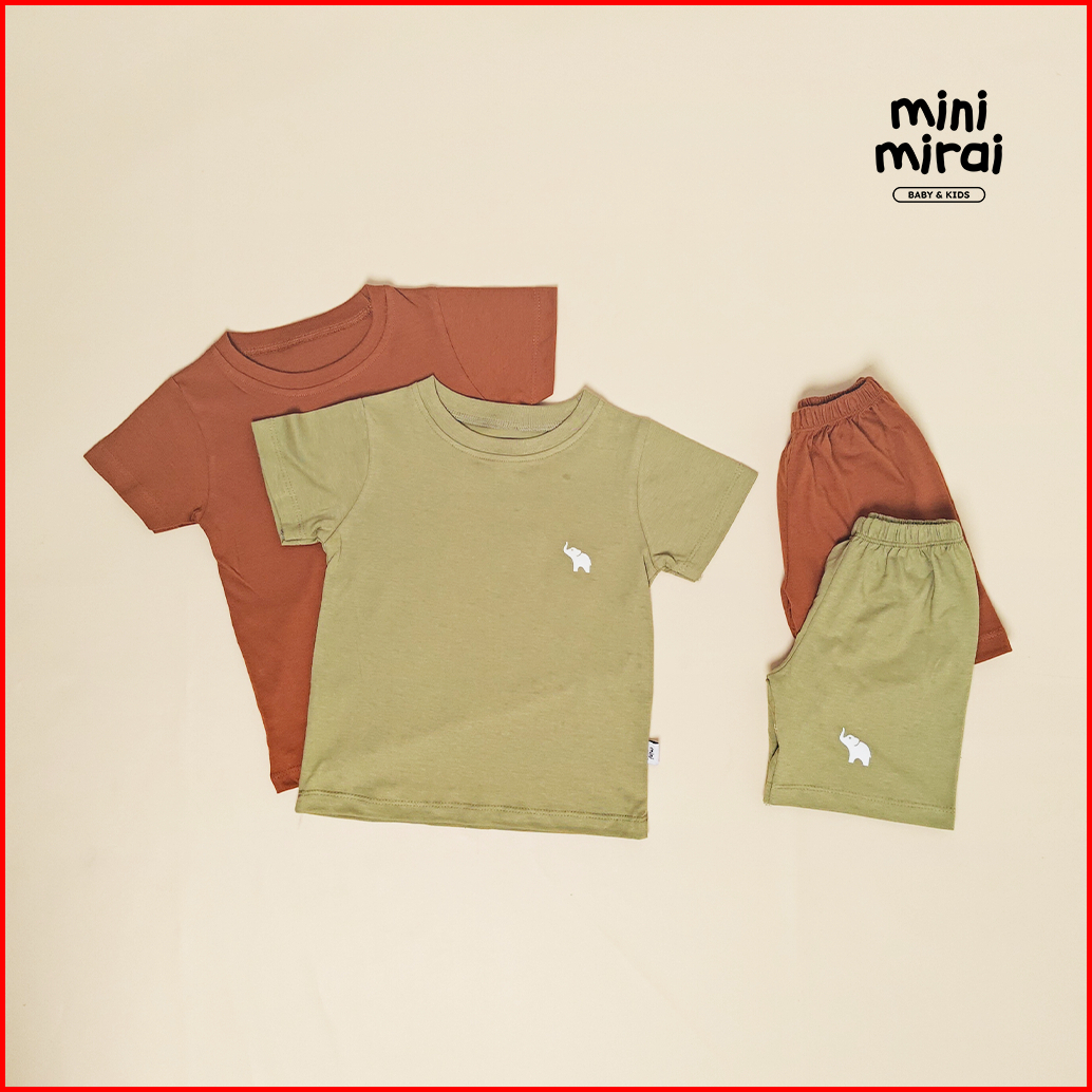 Mini Mirai - Setelan Anak Pendek Laki Laki Perempuan Baju Celana - Earthtone 2