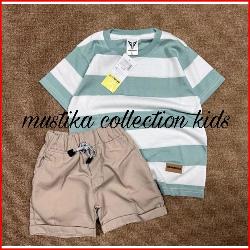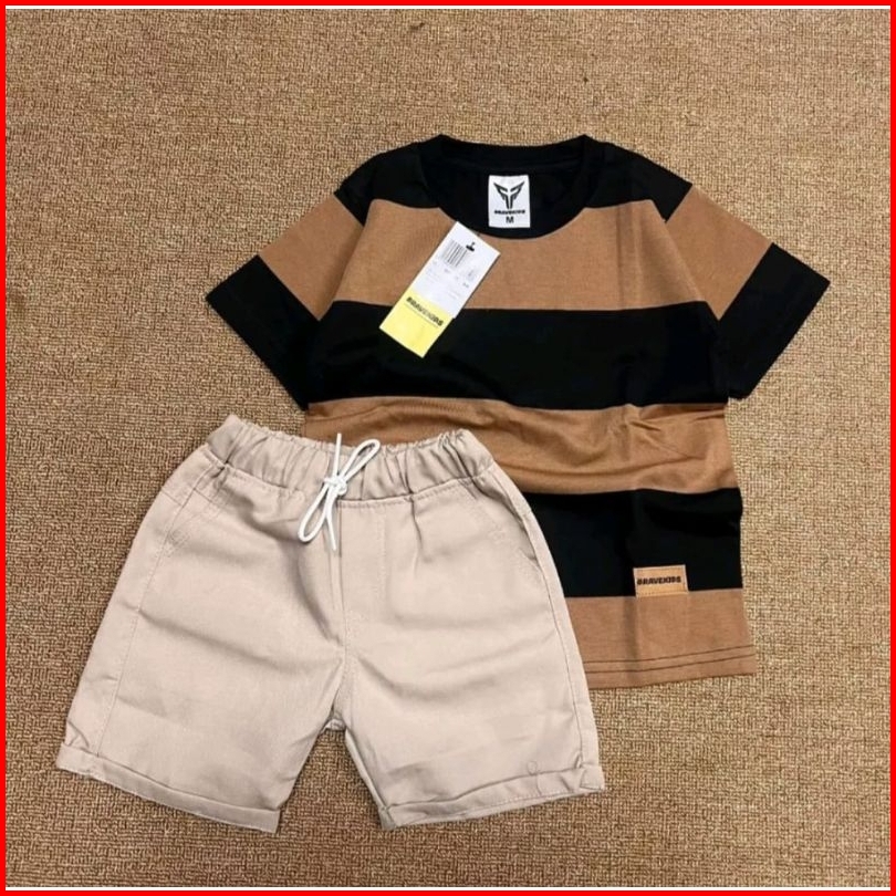 Setelan Anak Laki Laki Atasan Strif Besar Usia 1-6 Tahun