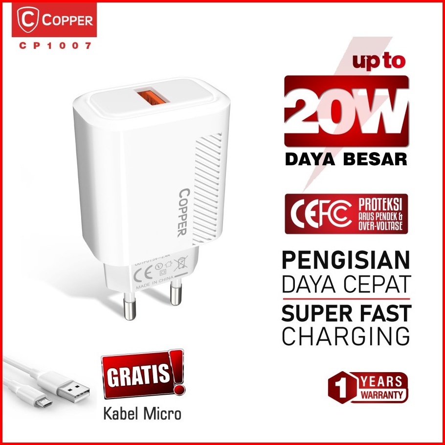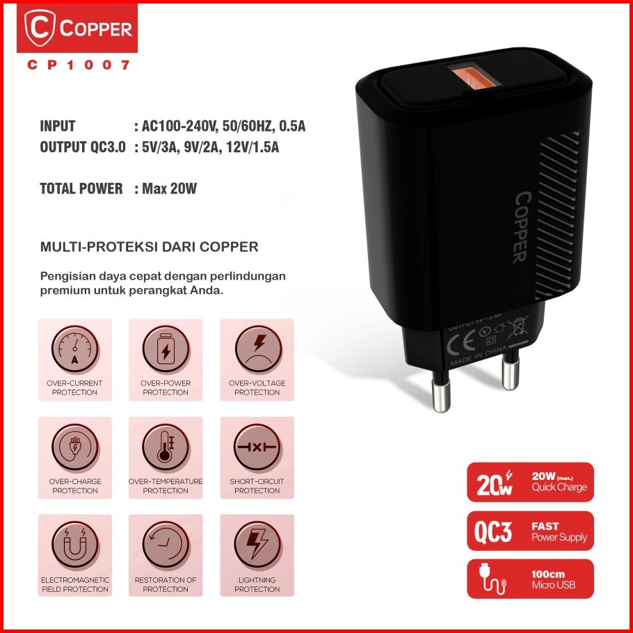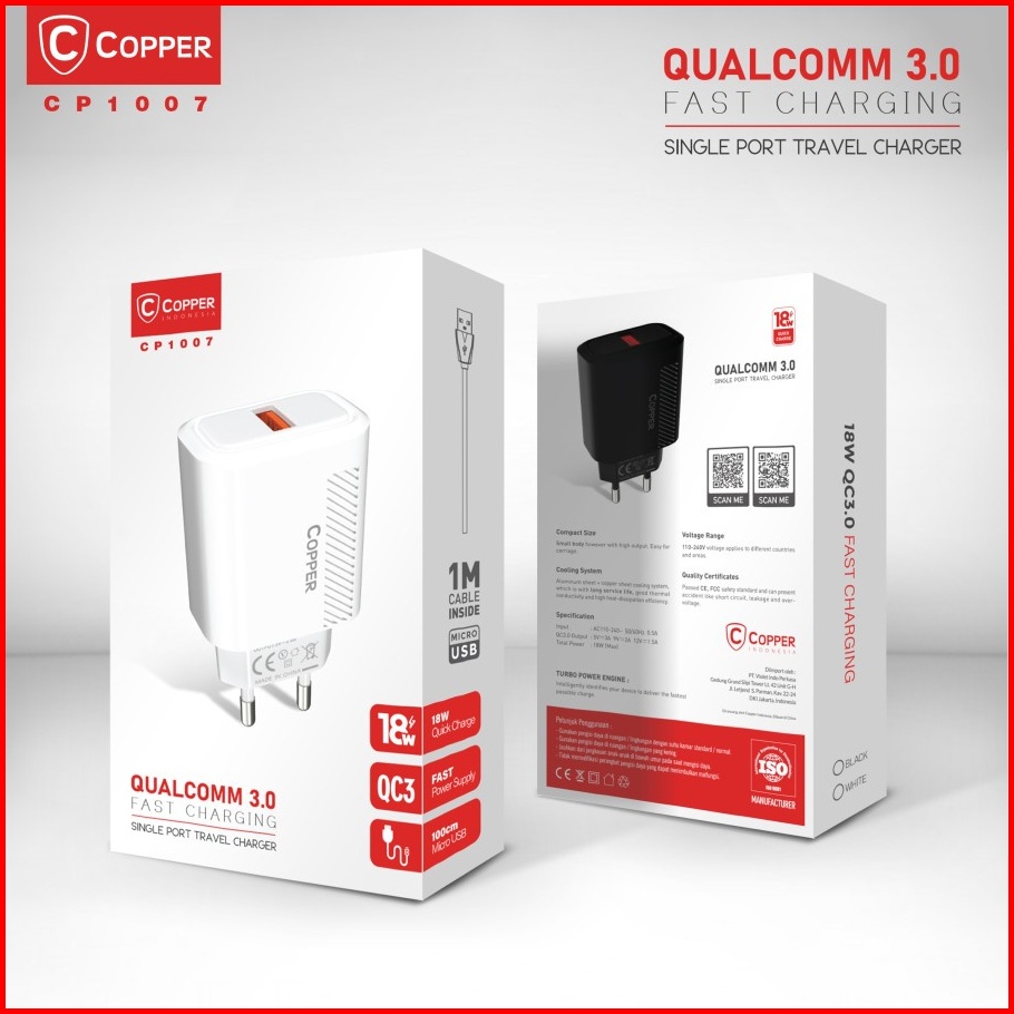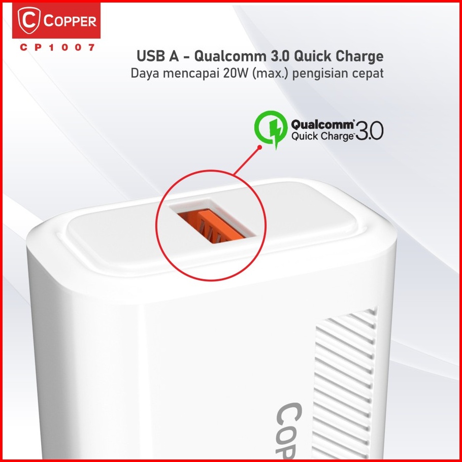 Copper Cp1007 Charger Single Port 18w Up To 20w Qc 3.0 Fast Charging