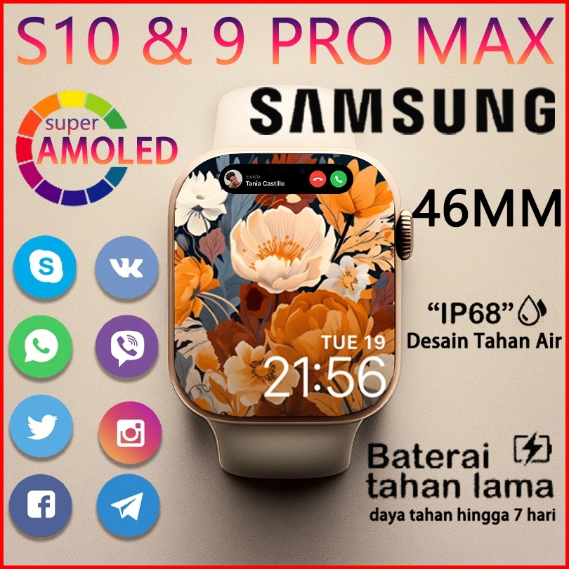 Samsung Smartwatch 10 Pro Max Wanita Tahan Air Jam Pintar Bluetooth Olahraga Smart Watch Gps Peta Nfc Smartwatch Hd Touc
