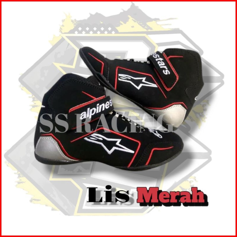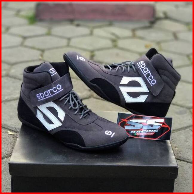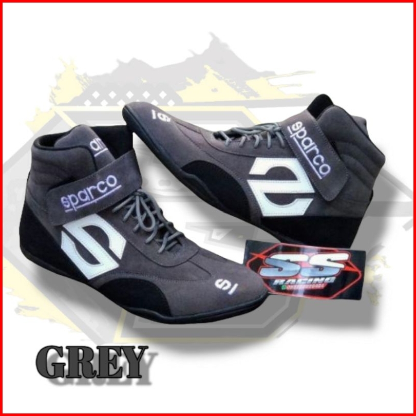Sepatu Balap Drag Bike Race Touring Cornering Gokart Drift Hitam Abu Grey Bahan Suede