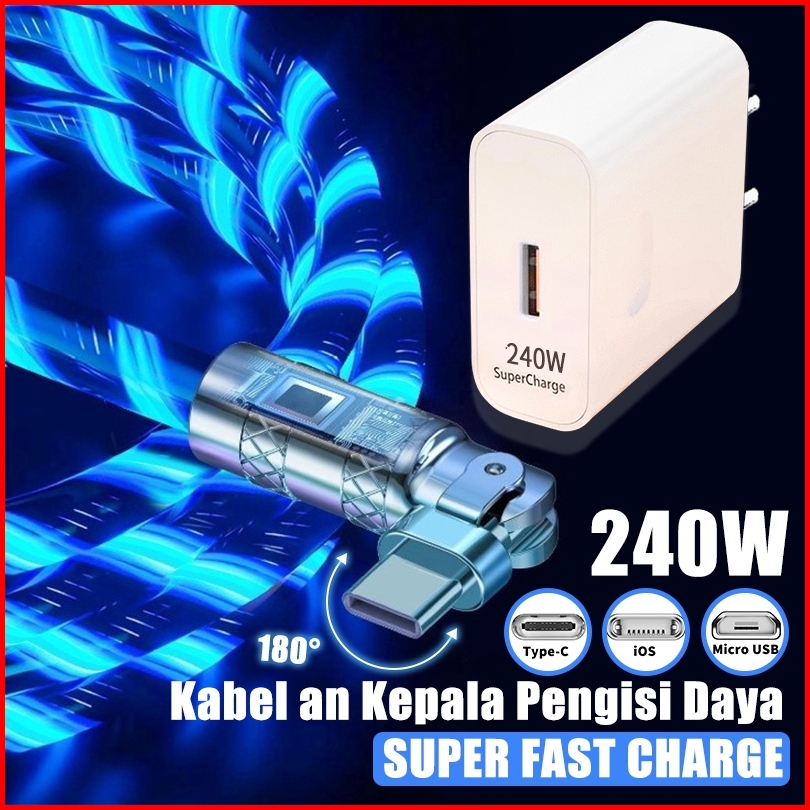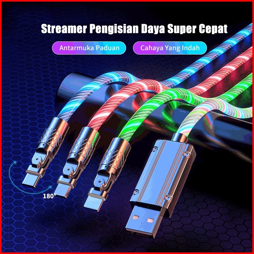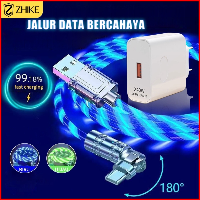 Zhike Kabel Data Fast Charging Kabel Casan Streamer Data Cable Tipe C Micro Usb Dengan Adaptor 240w Rotasi 180 Panjang 1