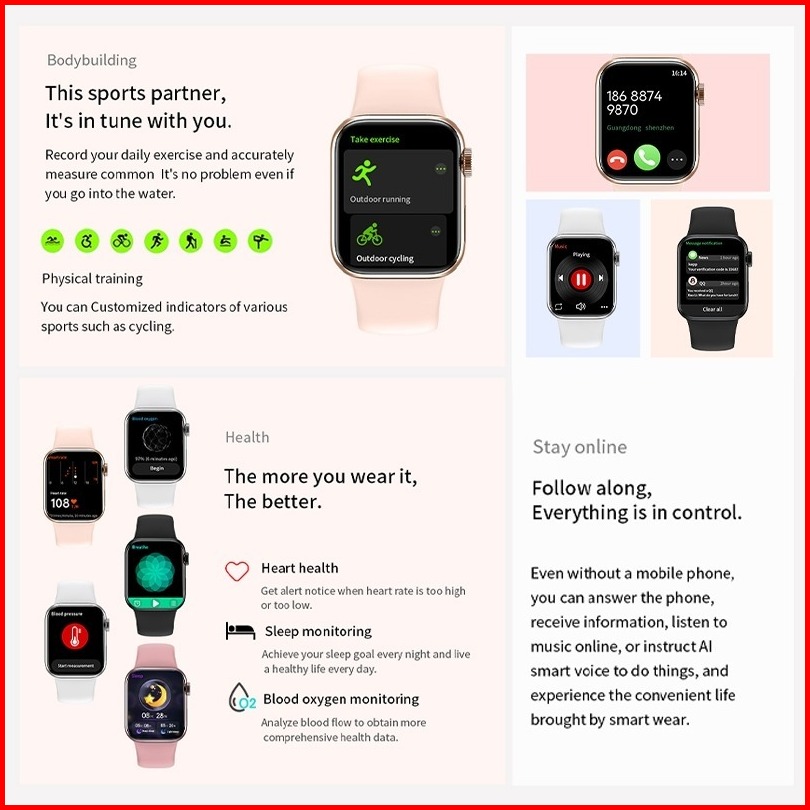 100 Originalasli Smartwatch Watch 9 Jam Pintar Olahraga Bluetooth Smart Watch Pintar Wanita Tahan Air Jam Tangan Pintar