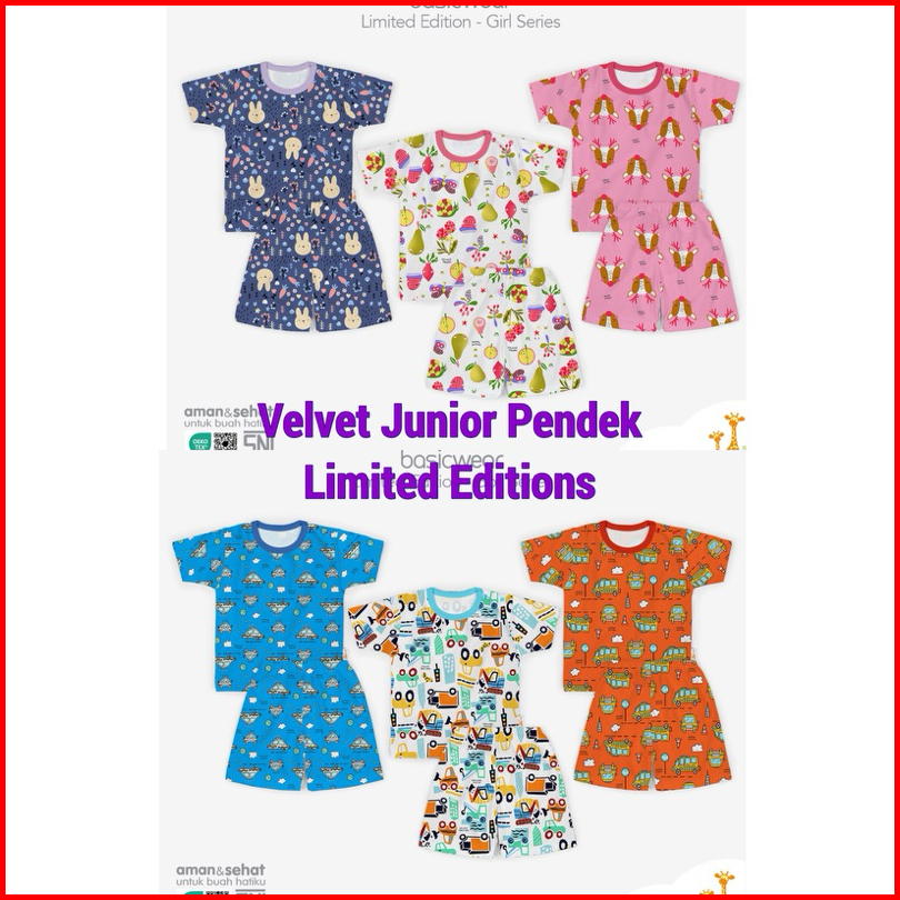 Velvet Junior Limited Editions Terbaru Stelan Katun Pendek Size Sml Lb Xl Xxl