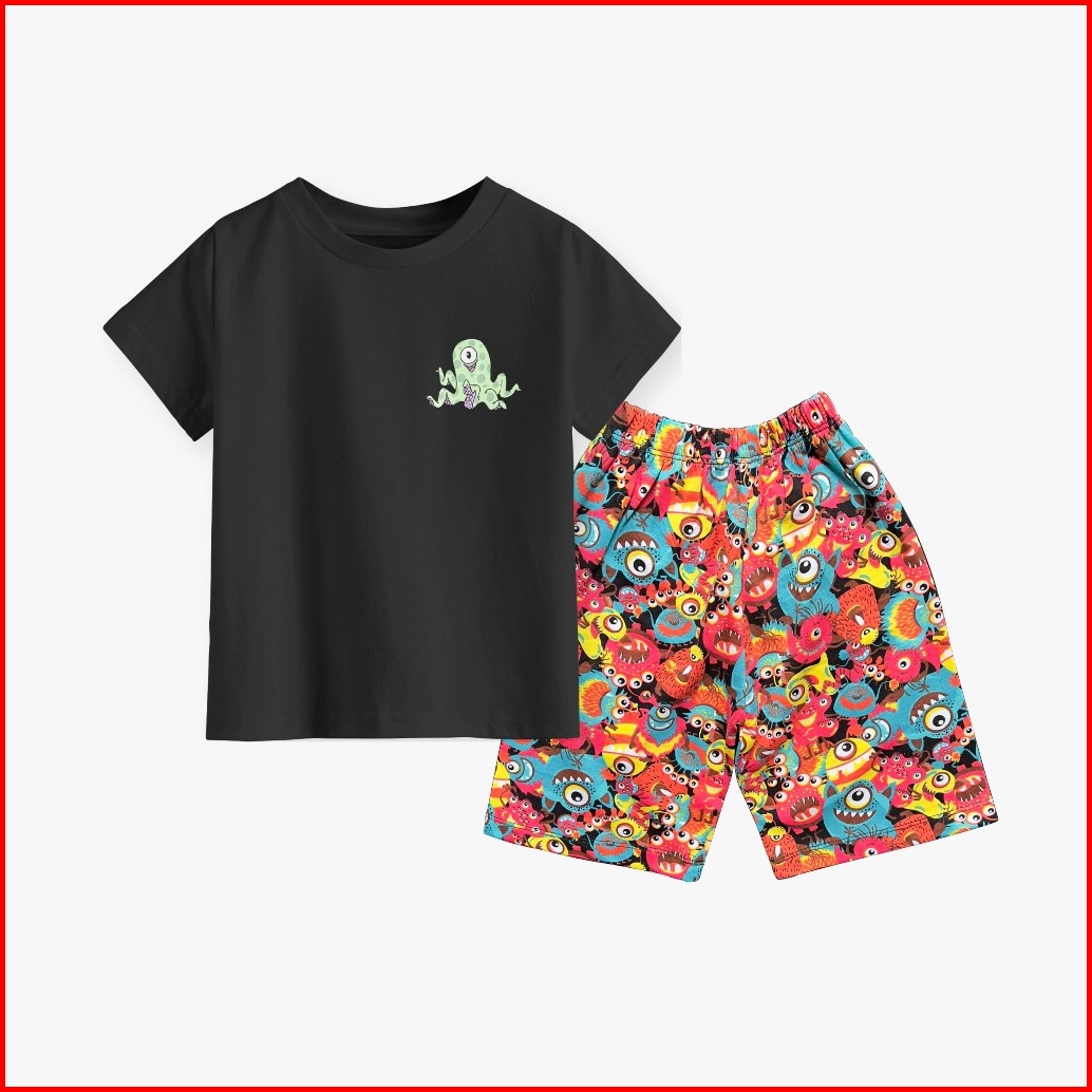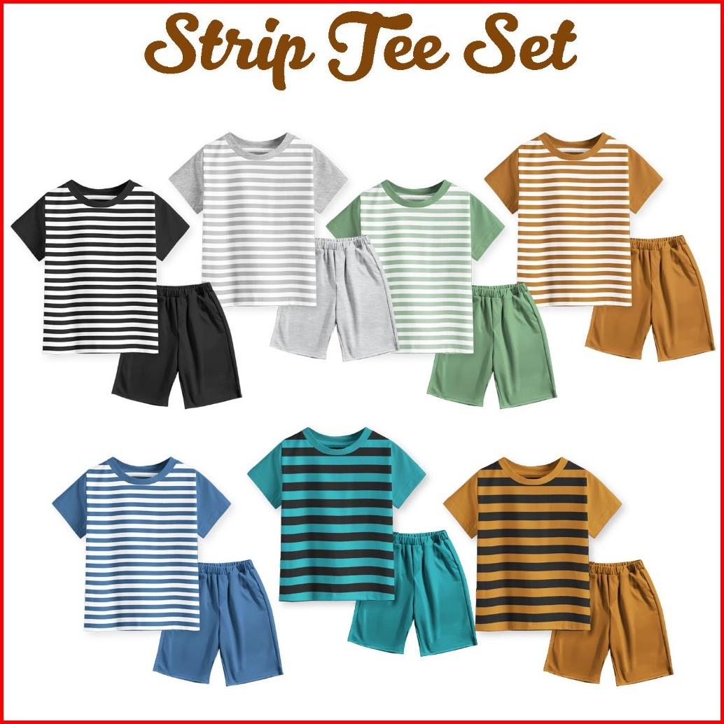 Setelan Kaos Salur Strip Dan Celana Anak Laki-laki Dan Perempuan Unisex