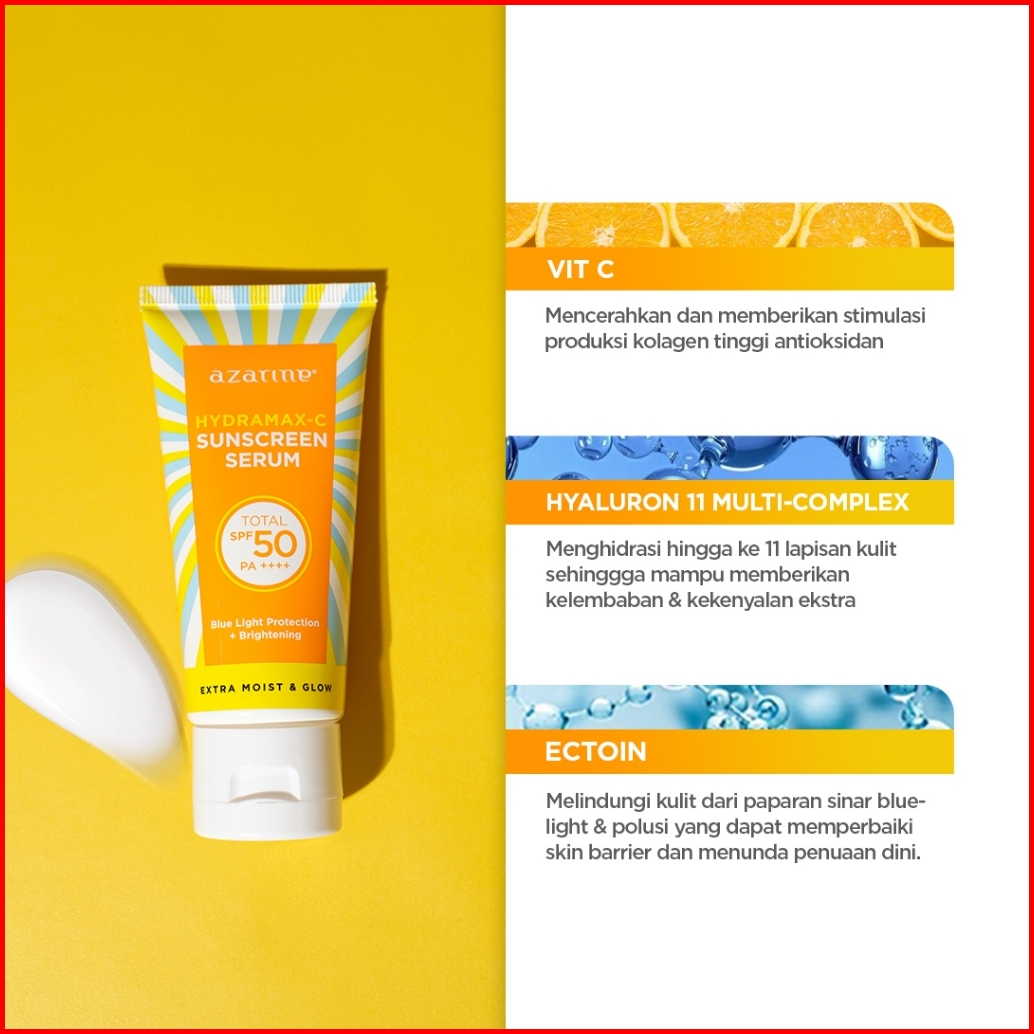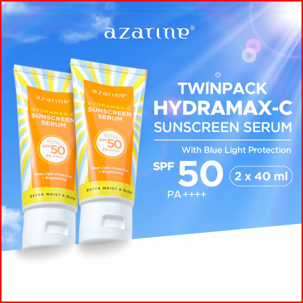 Twin Pack Azarine Hydramax-c Sunscreen Serum Spf50 Pa 2x40ml Lolos Uji Invivo Invitro Sunscreen Kulit Kering Sensitif