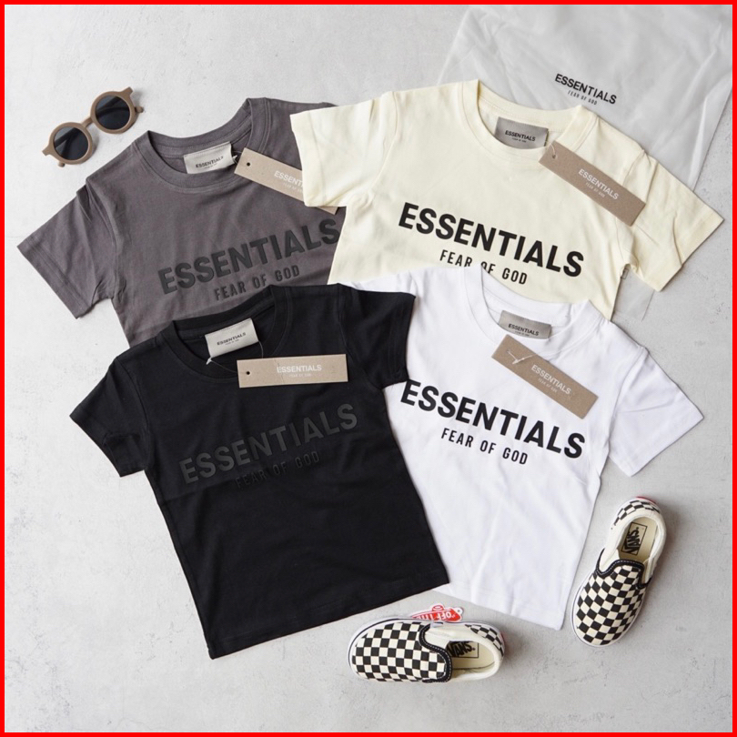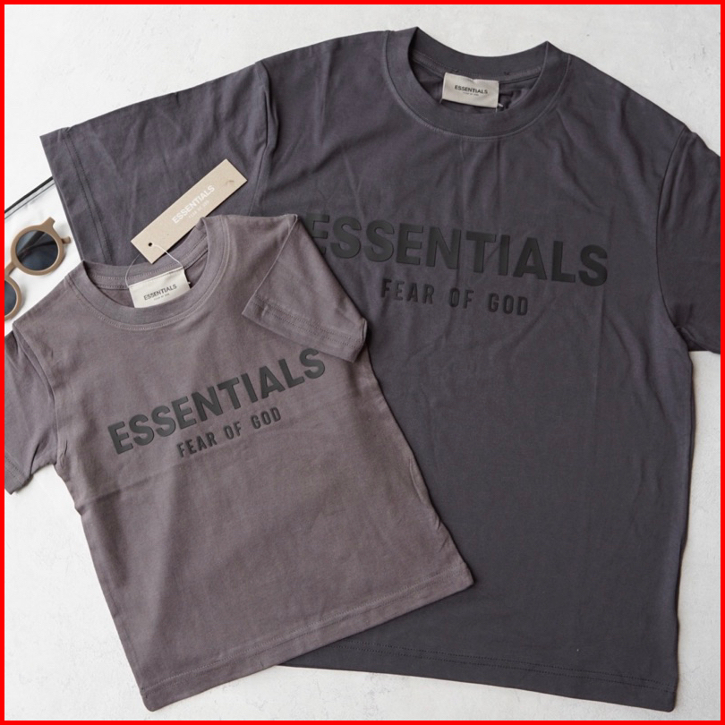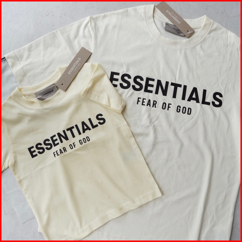 Essentials Family Couple Tee Size Kids 1-10y Adult S-3xl Cream White Grey Black Pakaian Baju Kaos Anak Unisex
