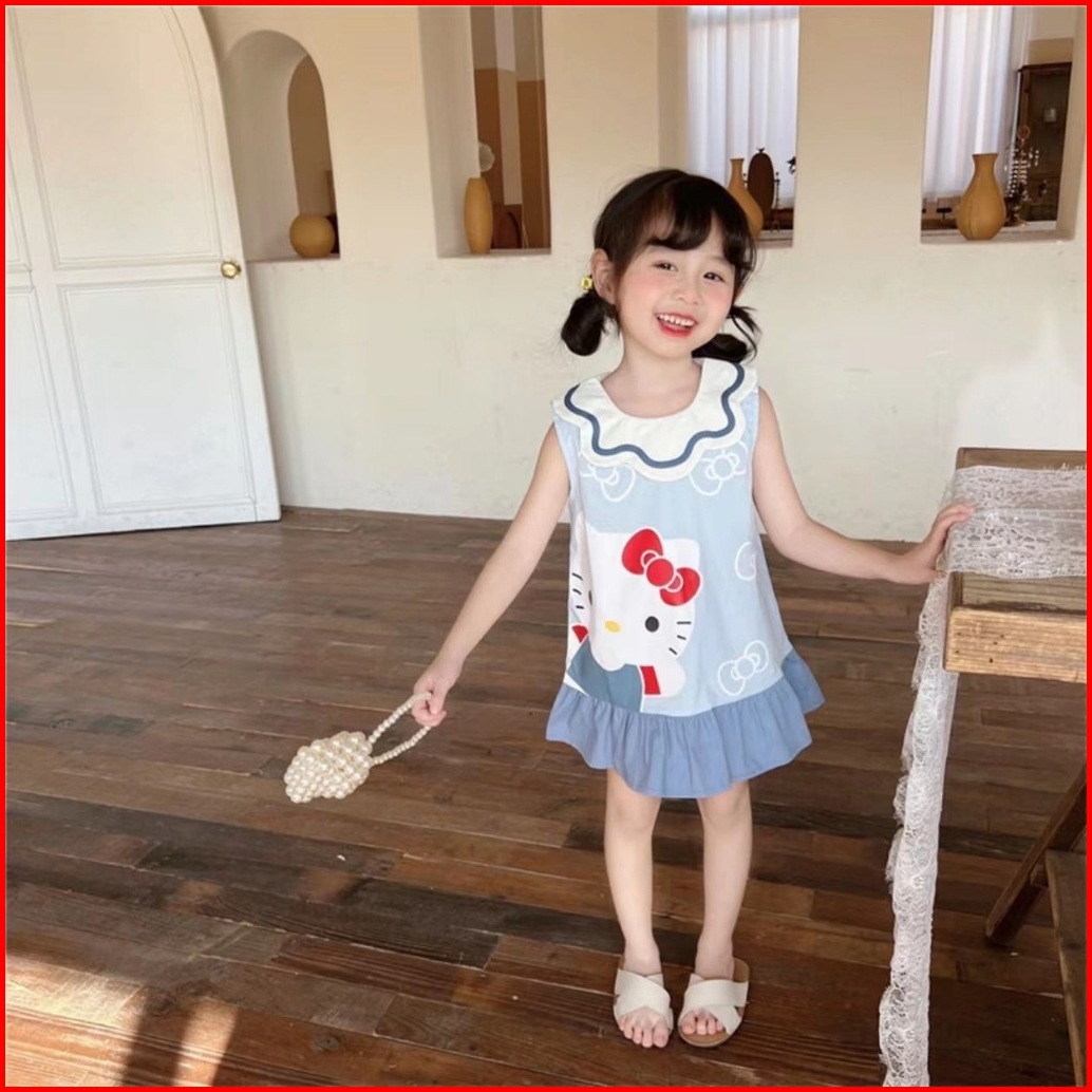 Princess Kesli 1-9 Tahun Dress Hellomelody Kaos Anak Perempuan Bahan Katun Lembut Nyaman Gaun Anak