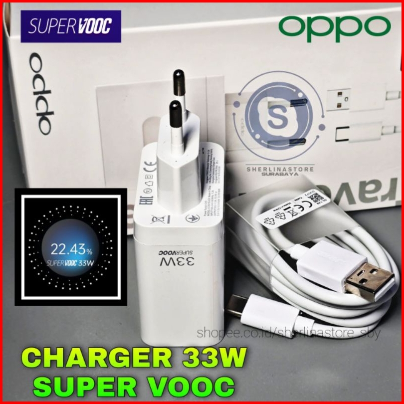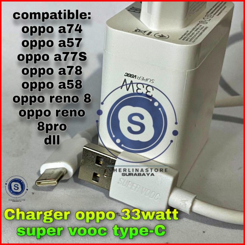 Charger Casan Cas Original Type C 33w Super Vooc Reno 6 7 8 A57 A96 A77s A74 A76 A95 K10 F21 K3 A5 2020 A9 2020 Fast Cha