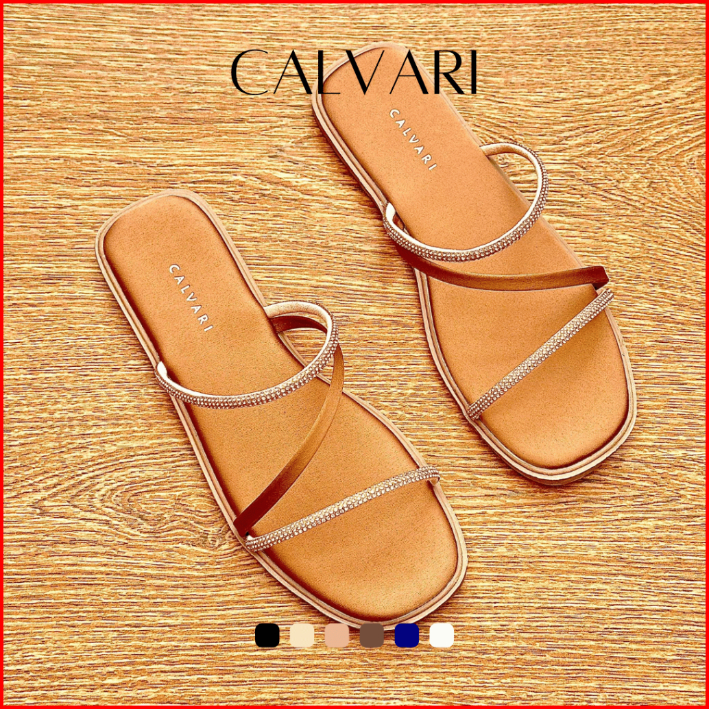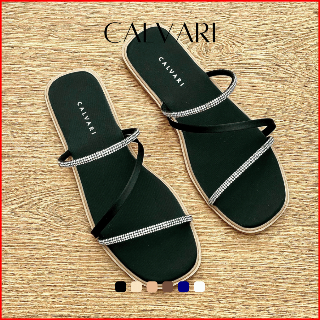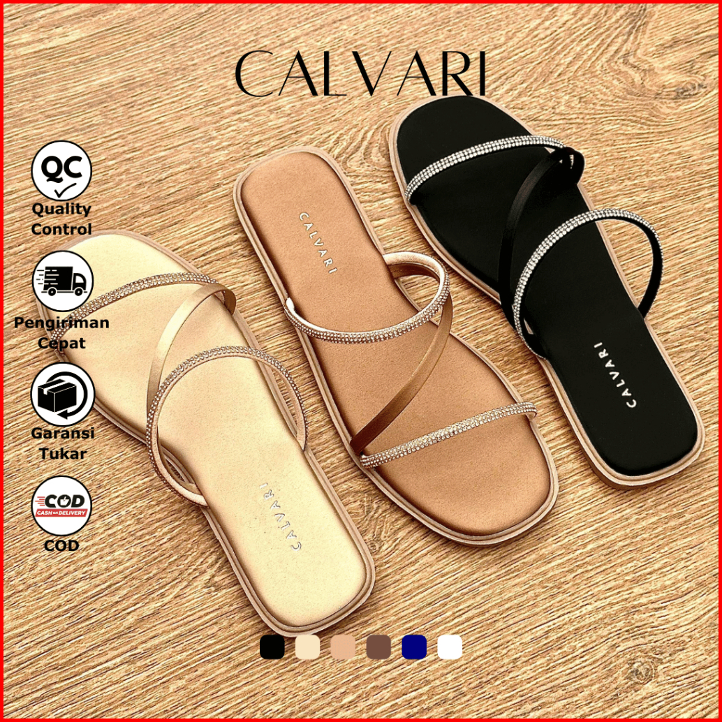 Calvari - Jennie Sandal Wanita Korea Teplek Casual Kekinian Size 36 - 40 Sendal Flat Cewek Kasual