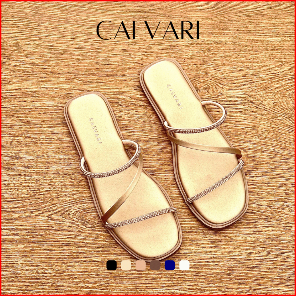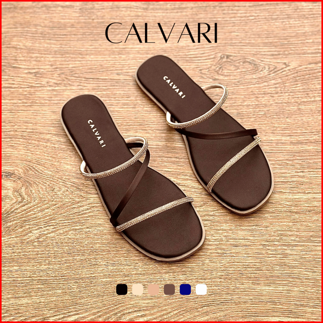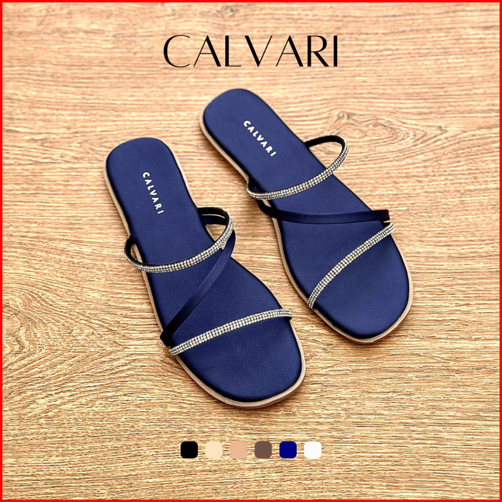 Calvari - Jennie Sandal Wanita Korea Teplek Casual Kekinian Size 36 - 40 Sendal Flat Cewek Kasual