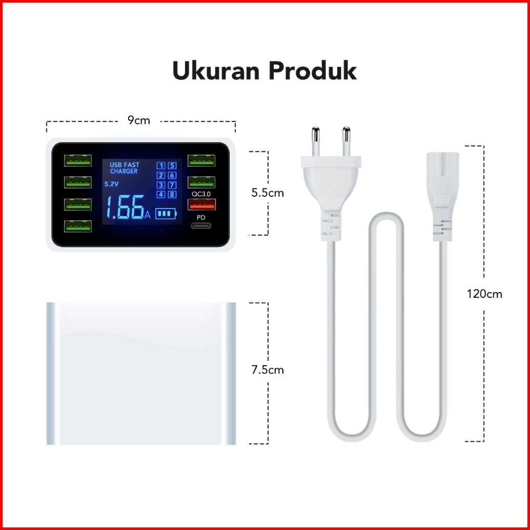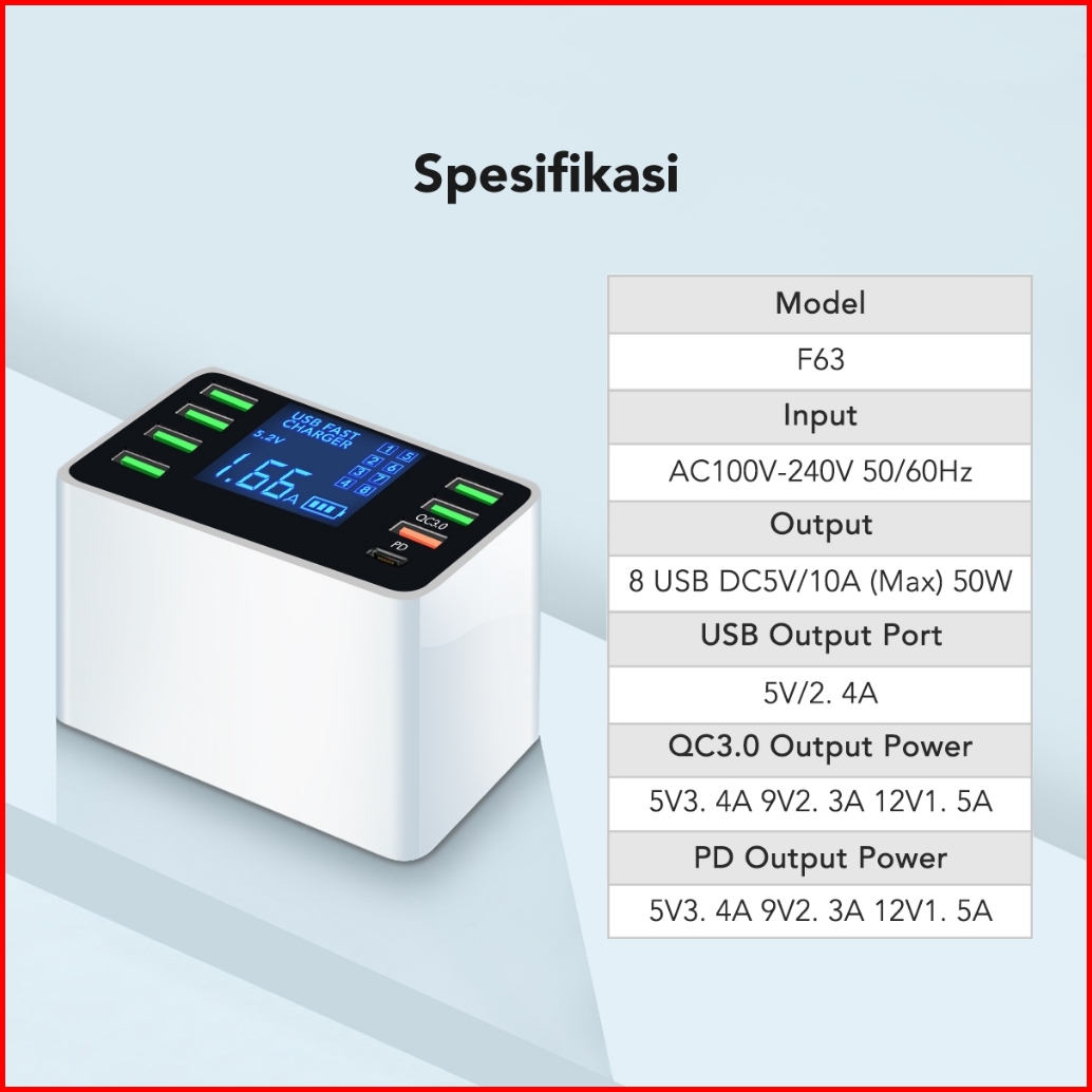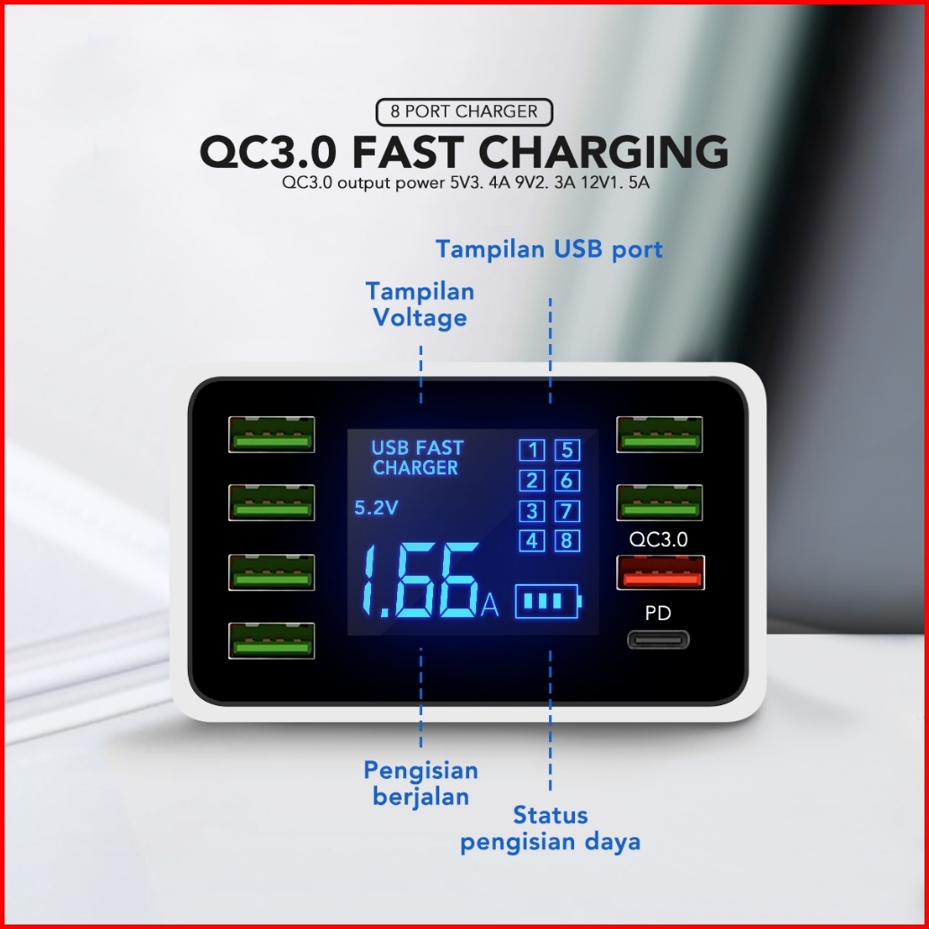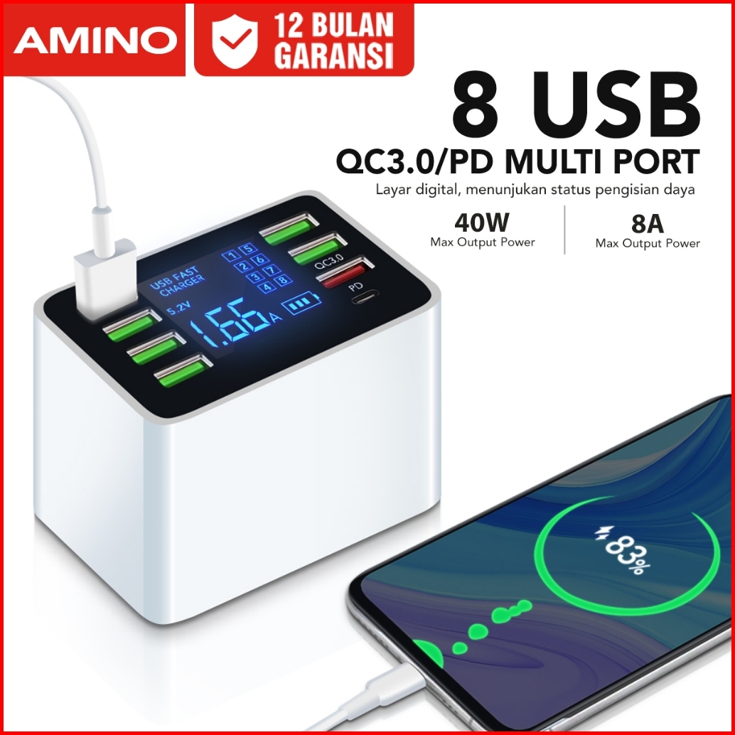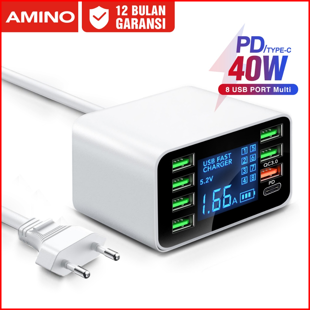Amino 8 Usb Port Multi Port Charger Qc 3.0 Pd Fast Charger Led Function 40w