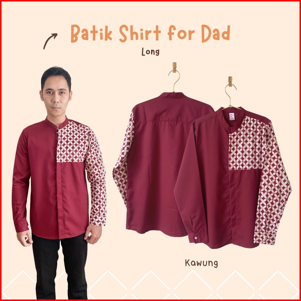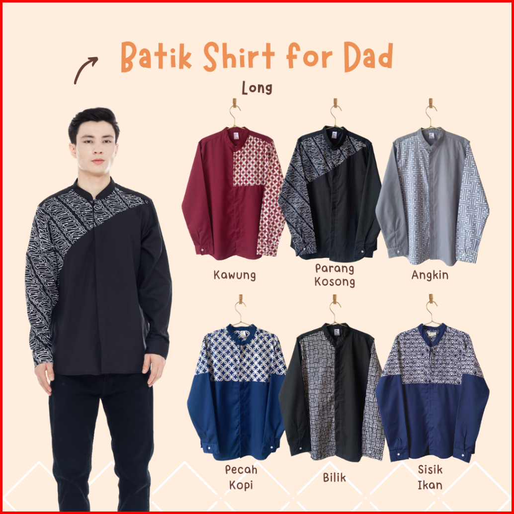Yobebee Kemeja Batik Katun Pria Dewasa Tangan Panjang Atasan Motif Slim Fit Shirt Couple Anak Ayah