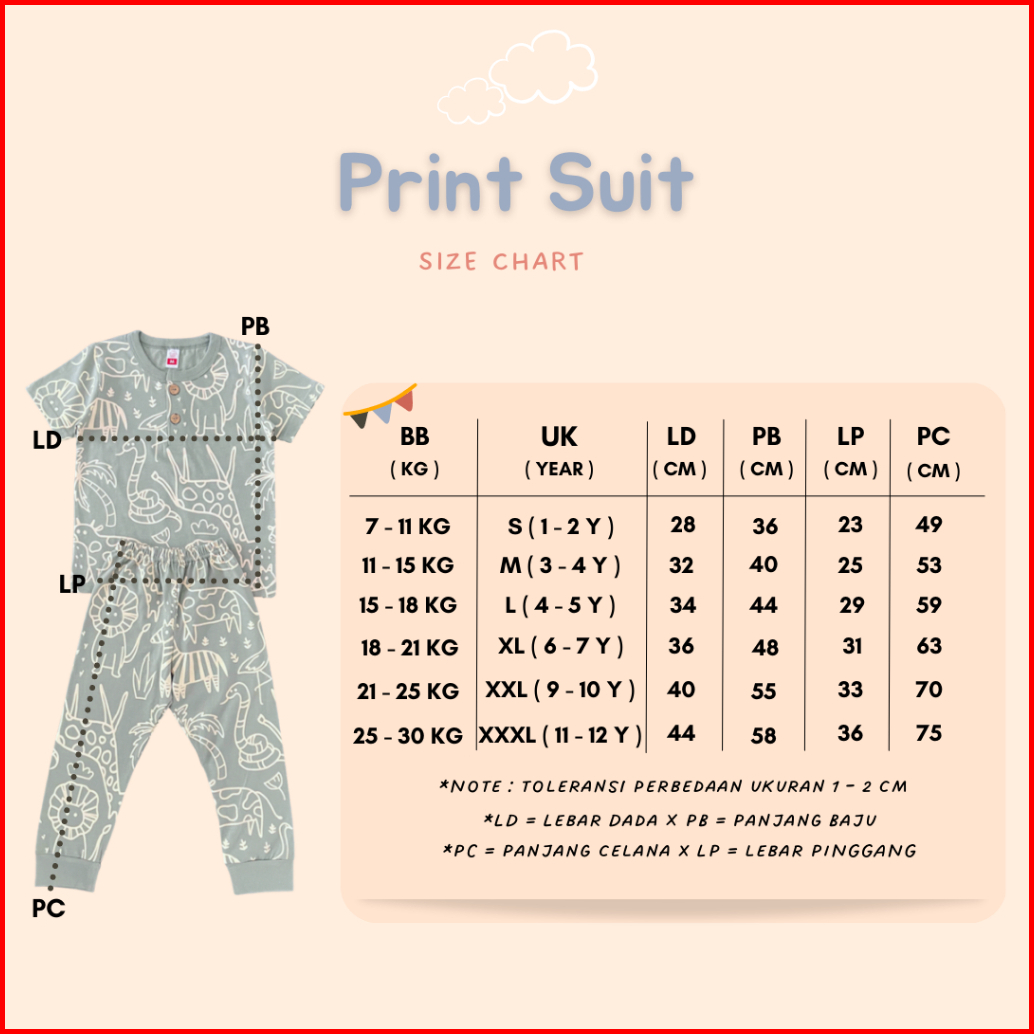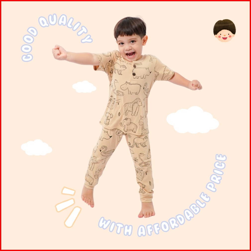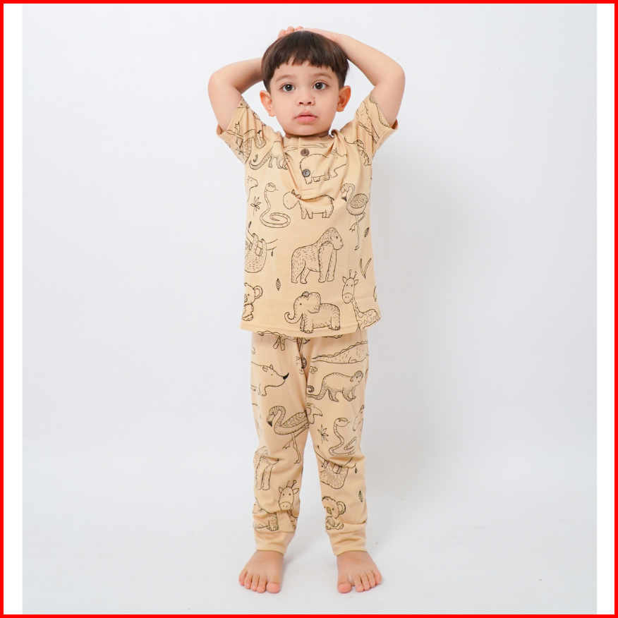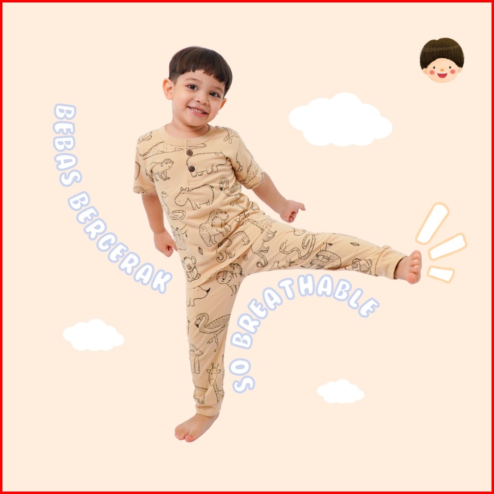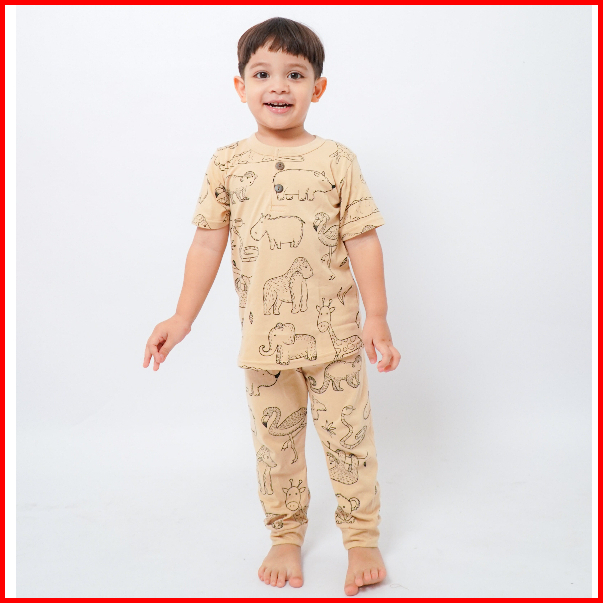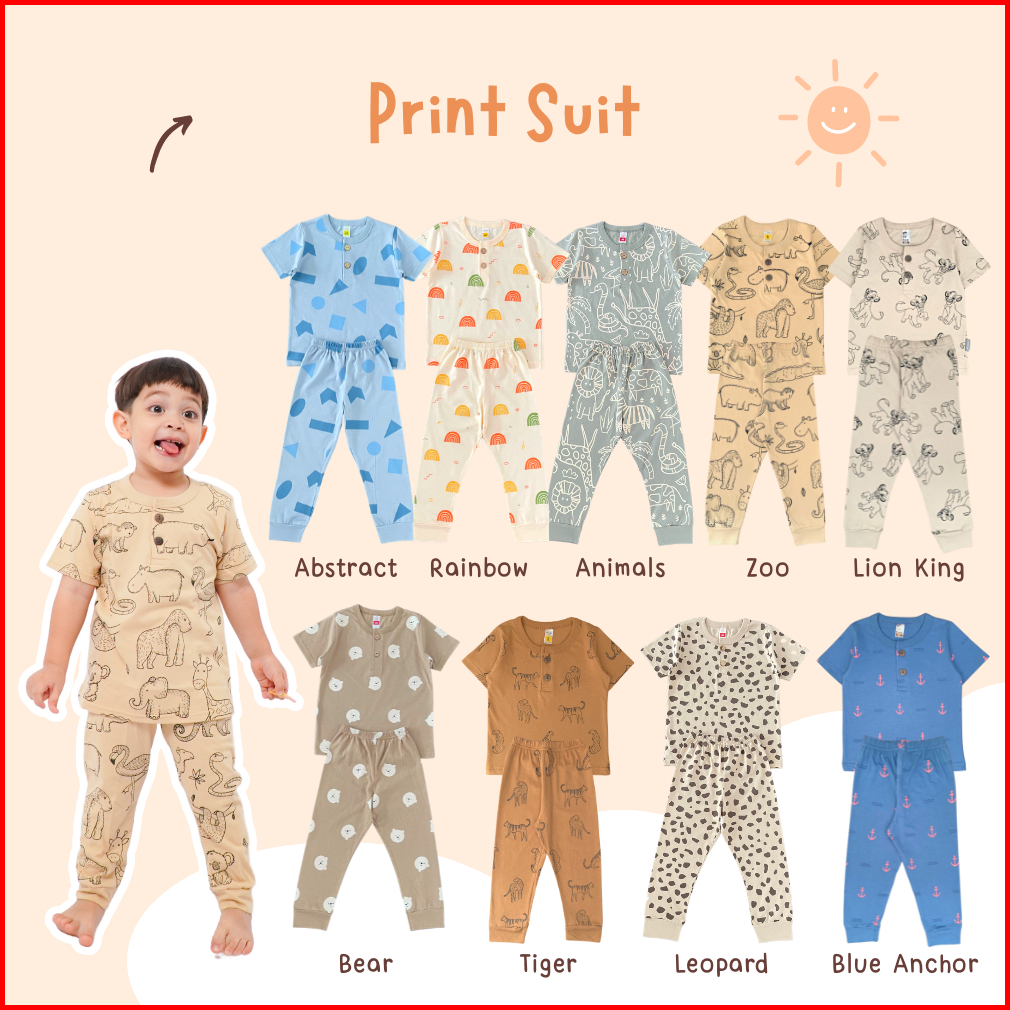 Yobebee Print Suit Setelan Baju Tidur Bayi Dan Anak Usia 2 3 4 6 8 Tahun One Set Piyama Kids Kaos Motif Karakter Baju Ha
