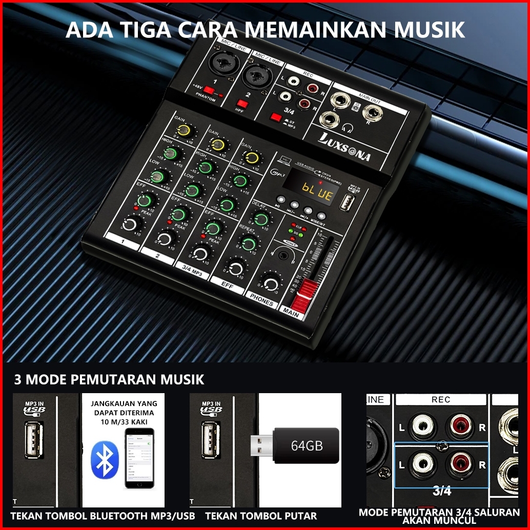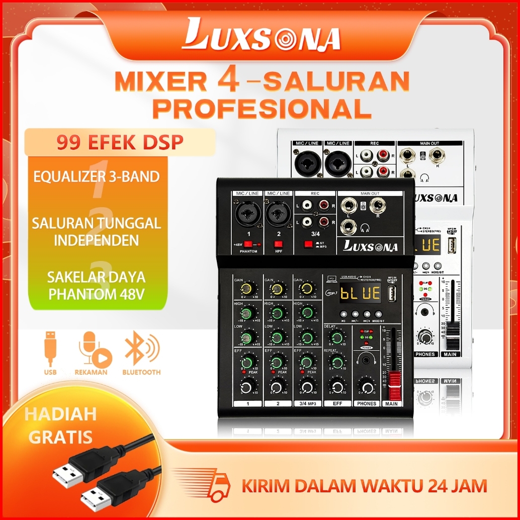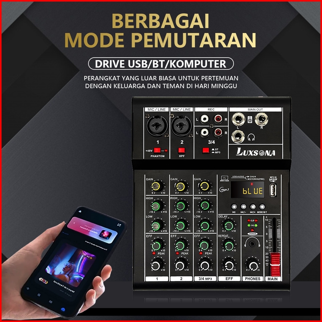 Mixer 4 Chanel Profesional Mixer Audio Mini Mixer Amplifier Bluetooth Soundcard Misker Audio 4 Saluran Murah Ashlley Aud