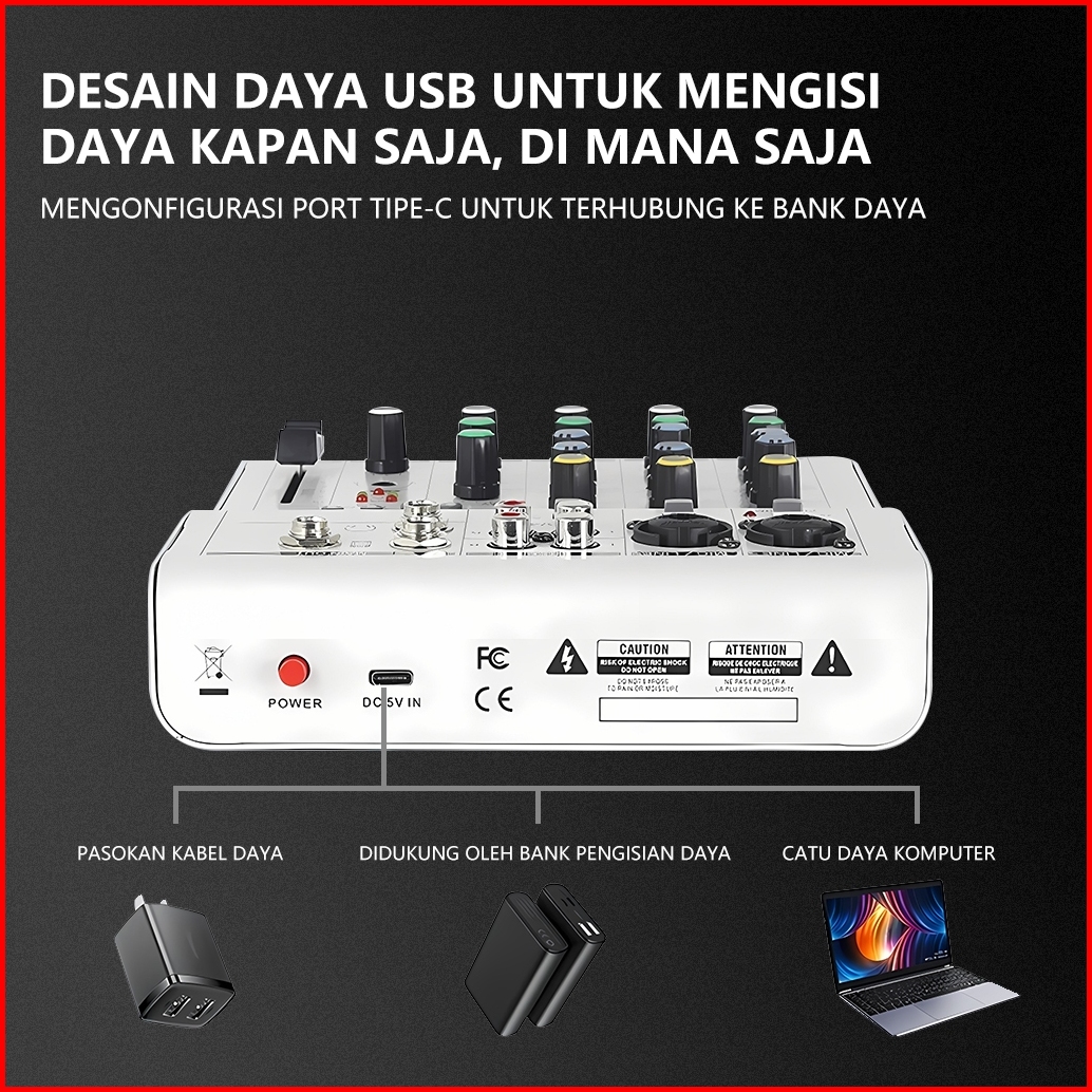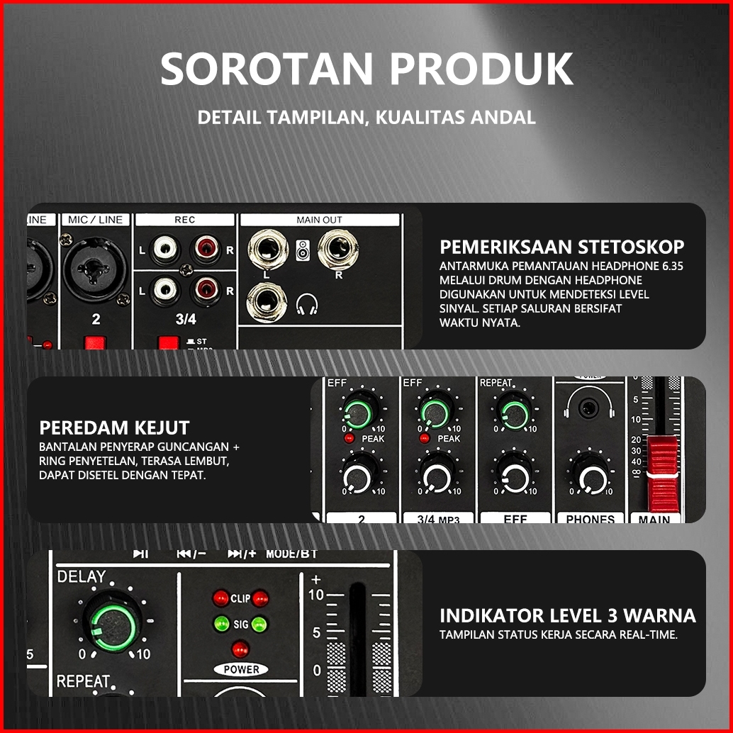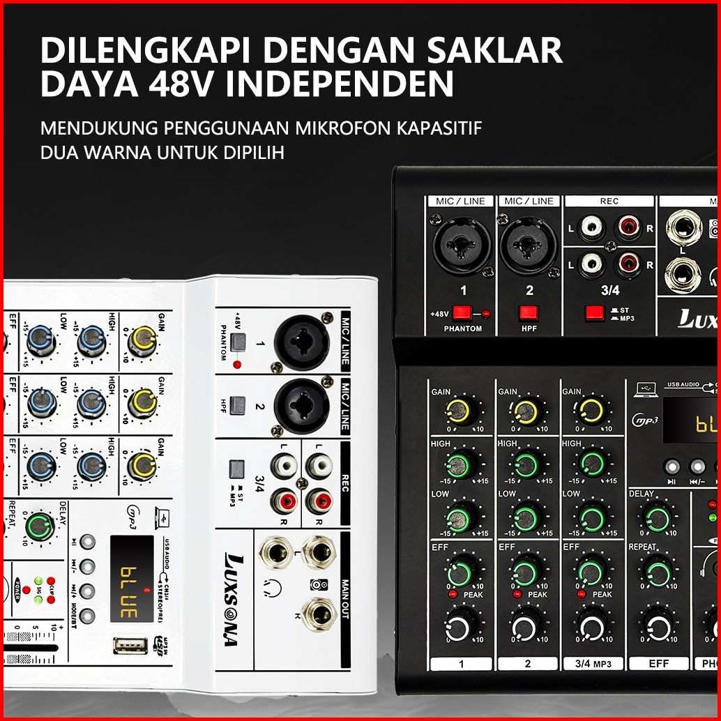 Mixer 4 Chanel Profesional Mixer Audio Mini Mixer Amplifier Bluetooth Soundcard Misker Audio 4 Saluran Murah Ashlley Aud