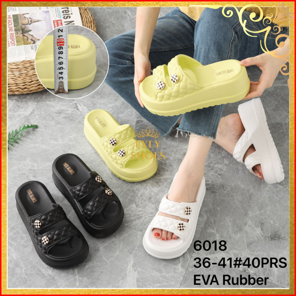 Sandal Selop Karet Jelly Wanita Import Balance Hak Tinggi 6018