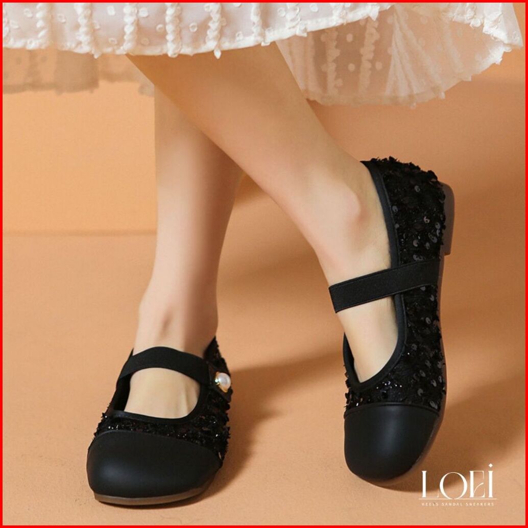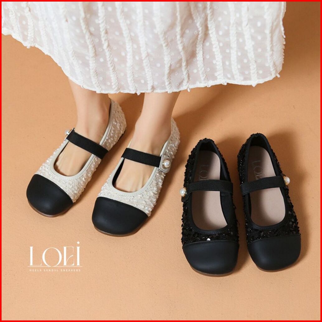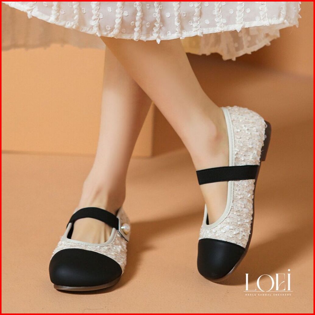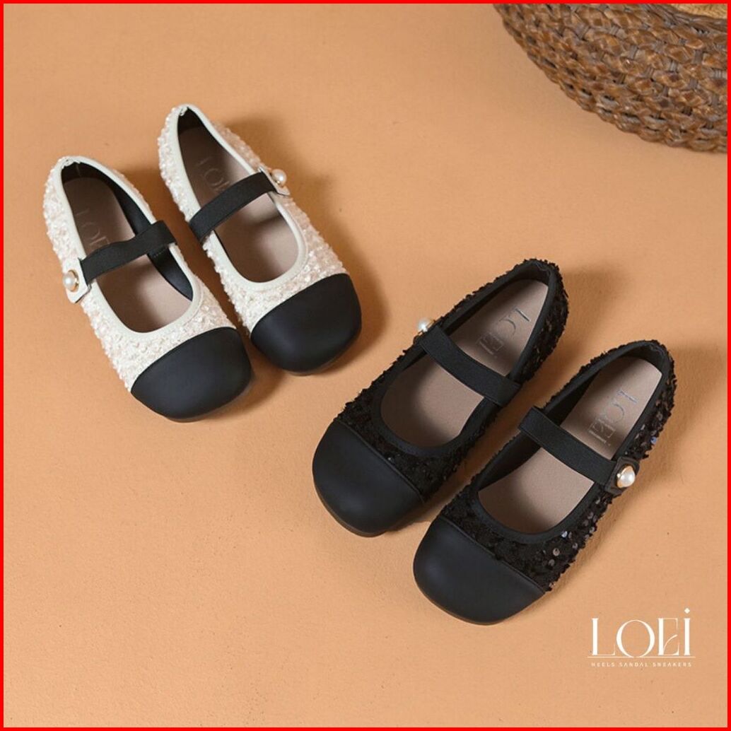 Loei Hyena Sepatu Flat Perempuan Glitter Elegan Motif Mutiara - Mary Jane Shoes 9210