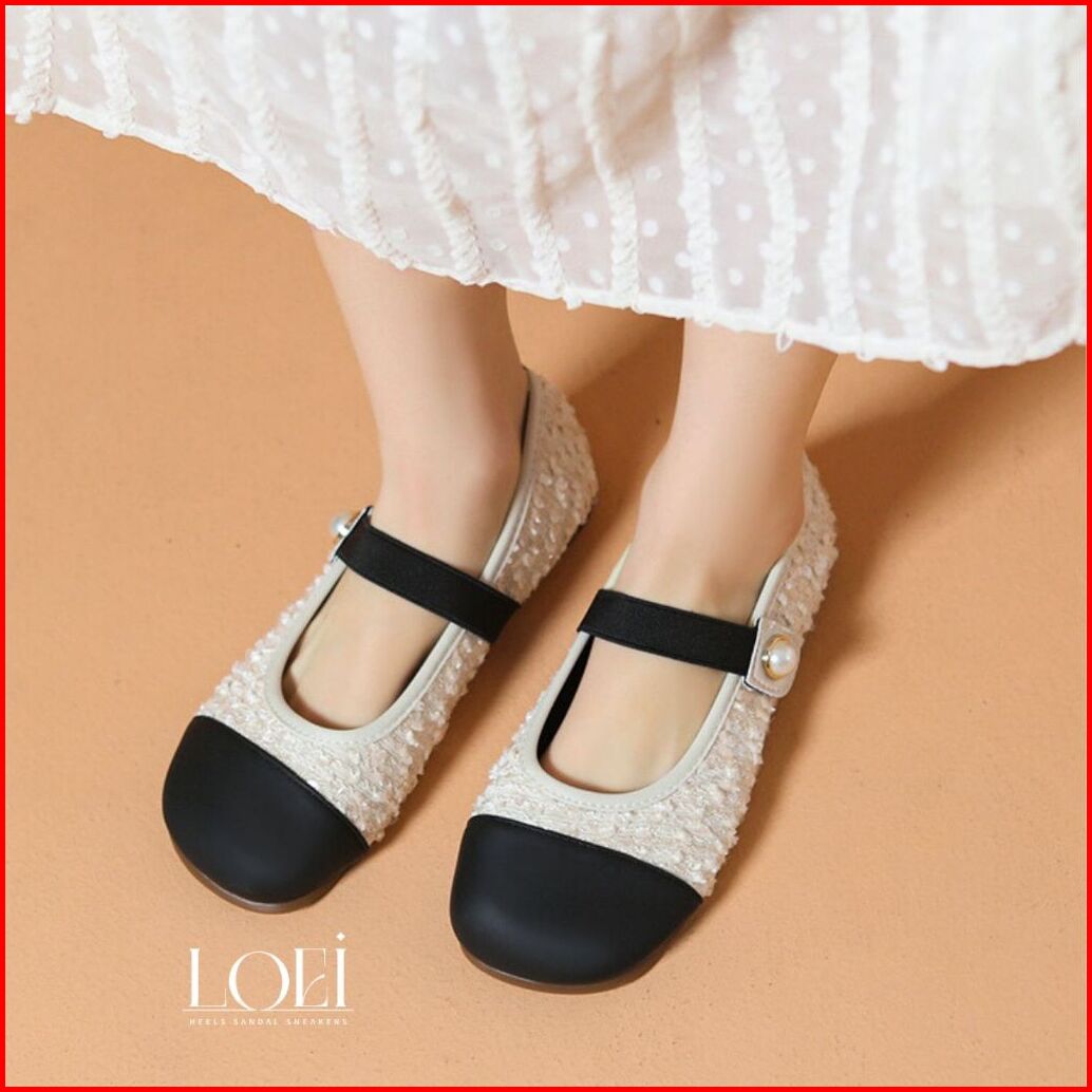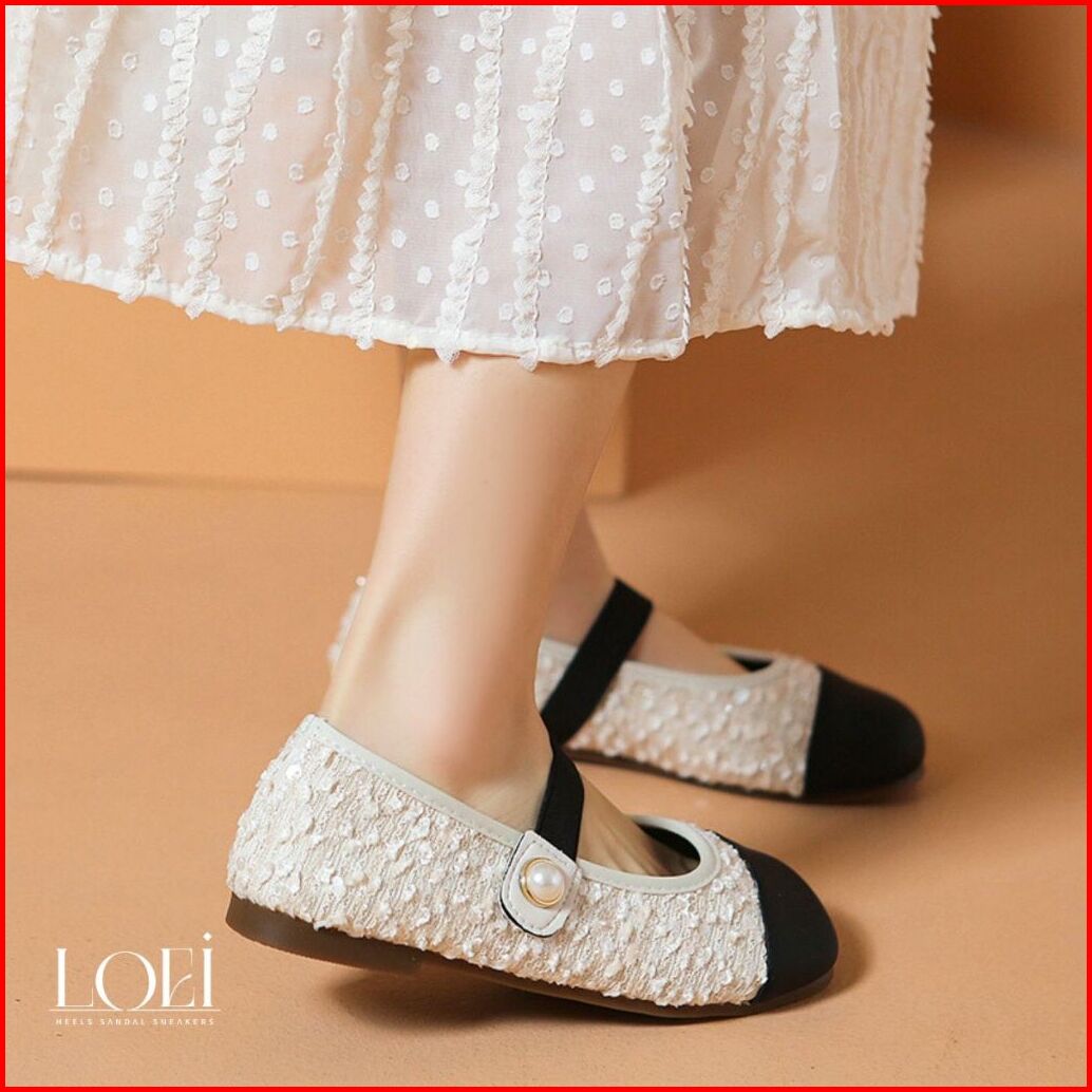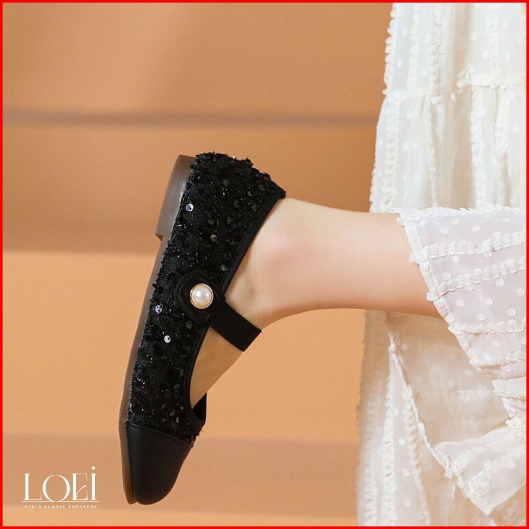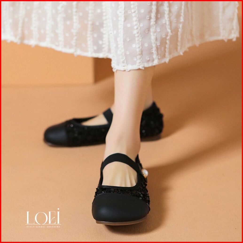 Loei Hyena Sepatu Flat Perempuan Glitter Elegan Motif Mutiara - Mary Jane Shoes 9210