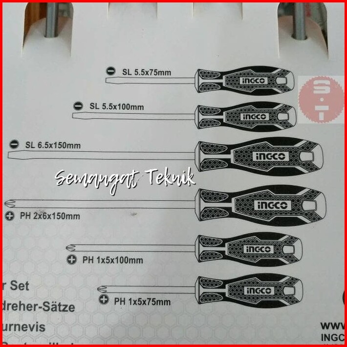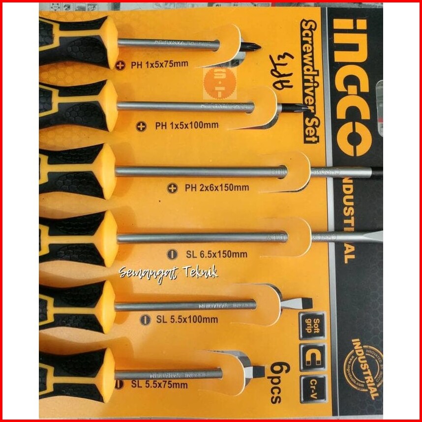 Obeng Set Gagang Karet Magnet Screwdriver Set 6 Pcs 6pcs Ingco