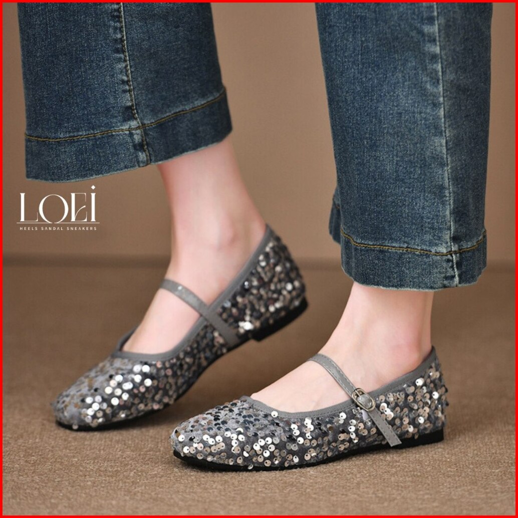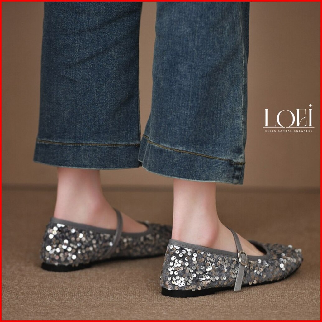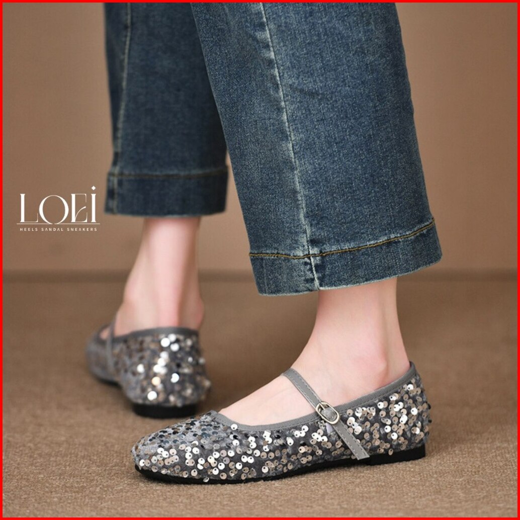 Loei Yubi Tali Flatshoes Wanita Sepatu Sequin Elegant Kekinian 5051