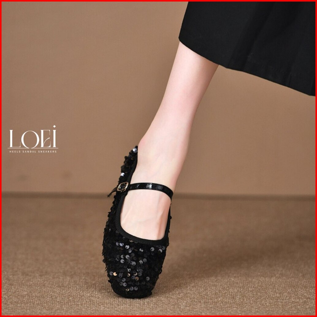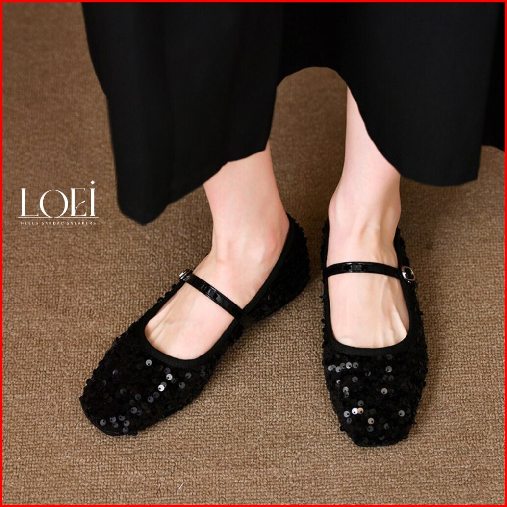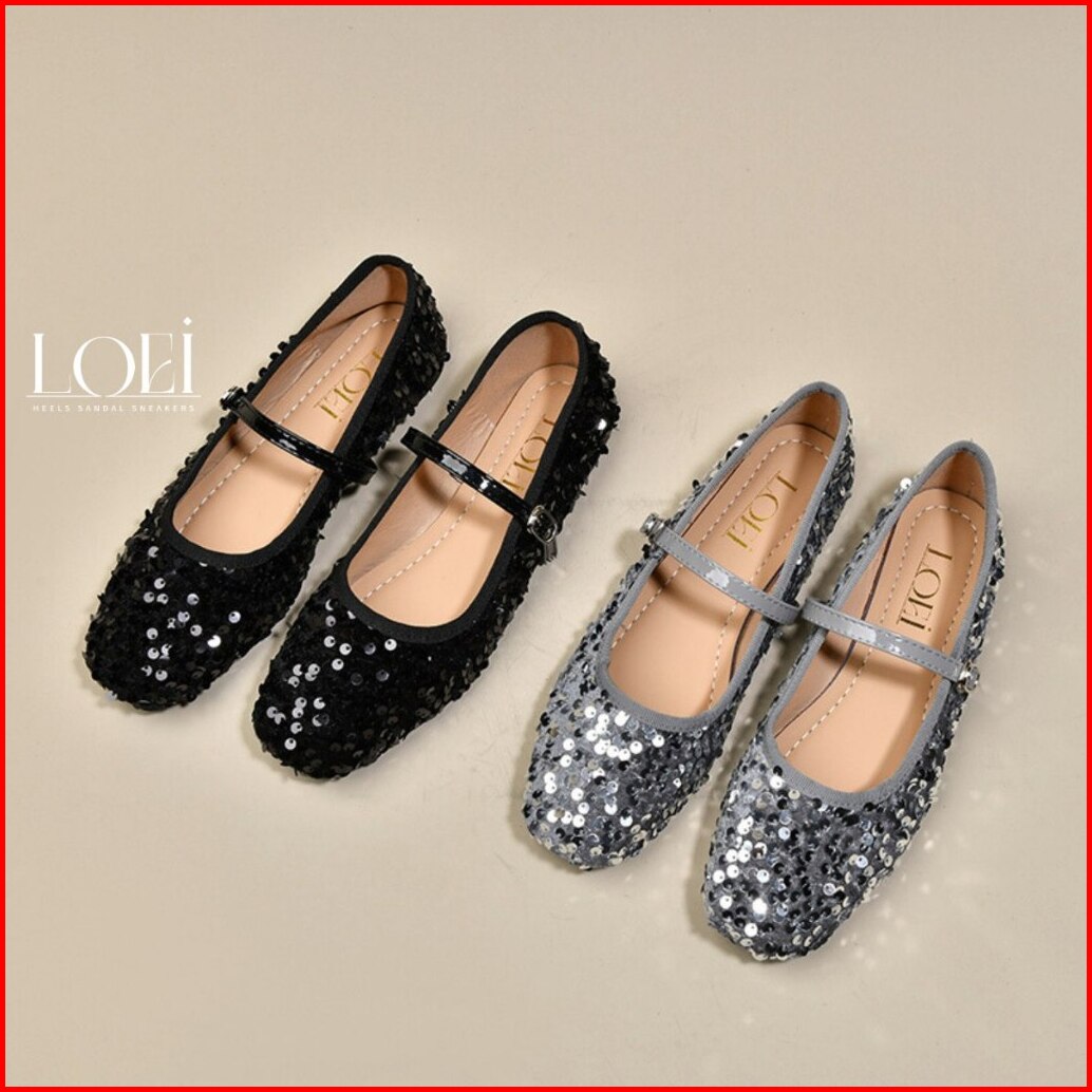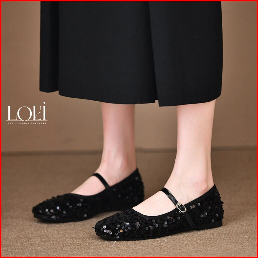 Loei Yubi Tali Flatshoes Wanita Sepatu Sequin Elegant Kekinian 5051