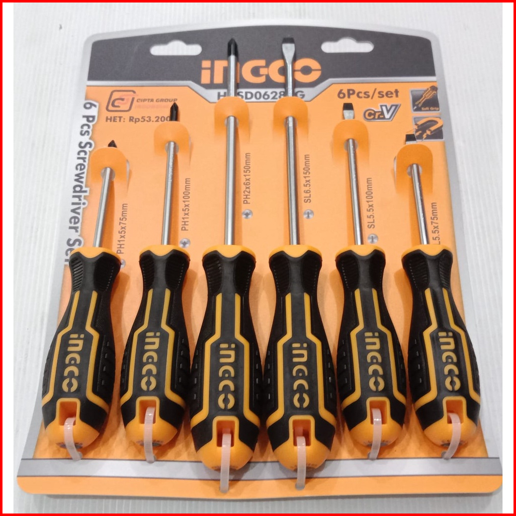 Obeng Min Plus Anti Slip Set 6 Obeng Set Gagang Karet Magnet Ingco Hksd0628 Murah Berkualitas