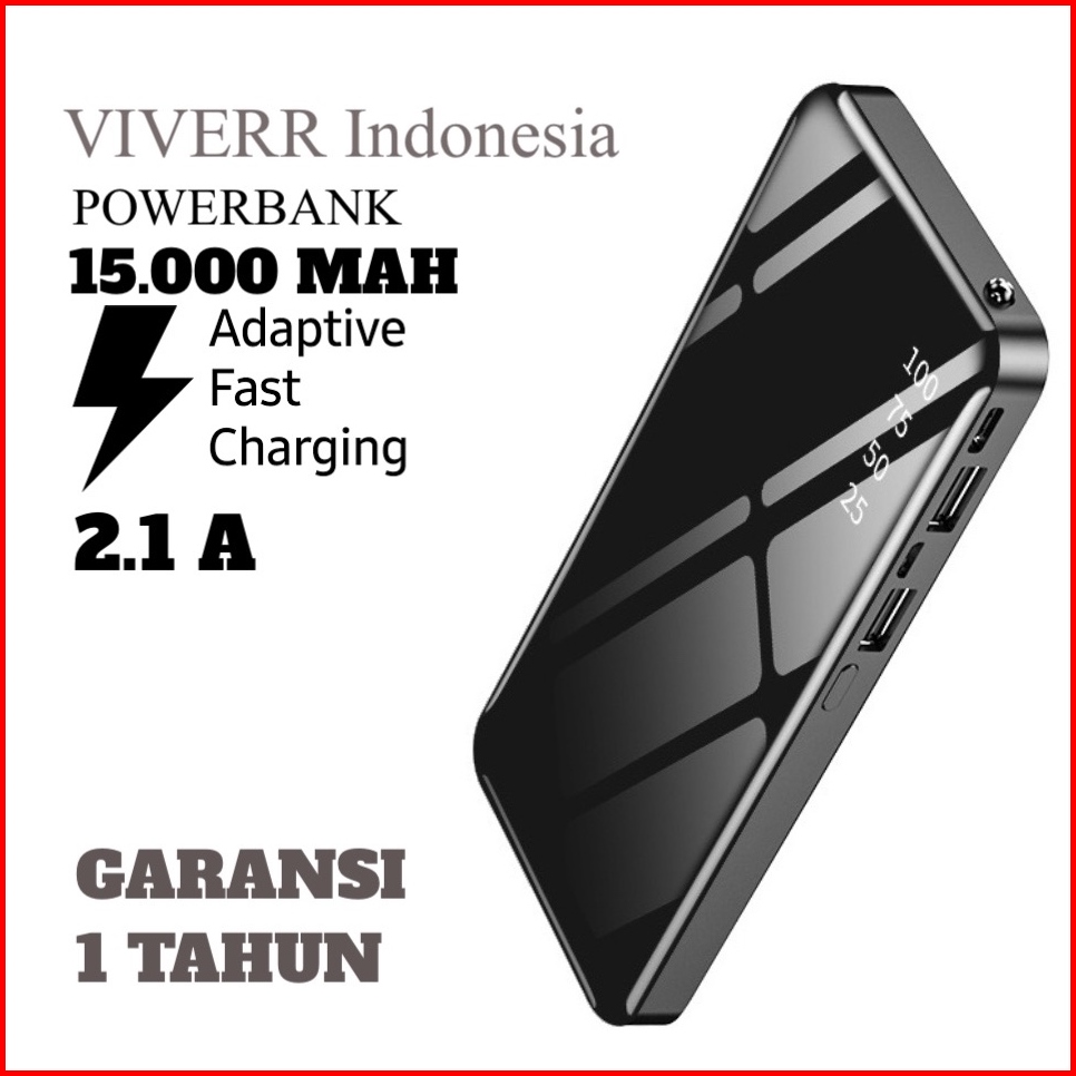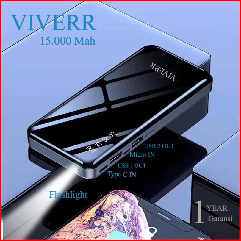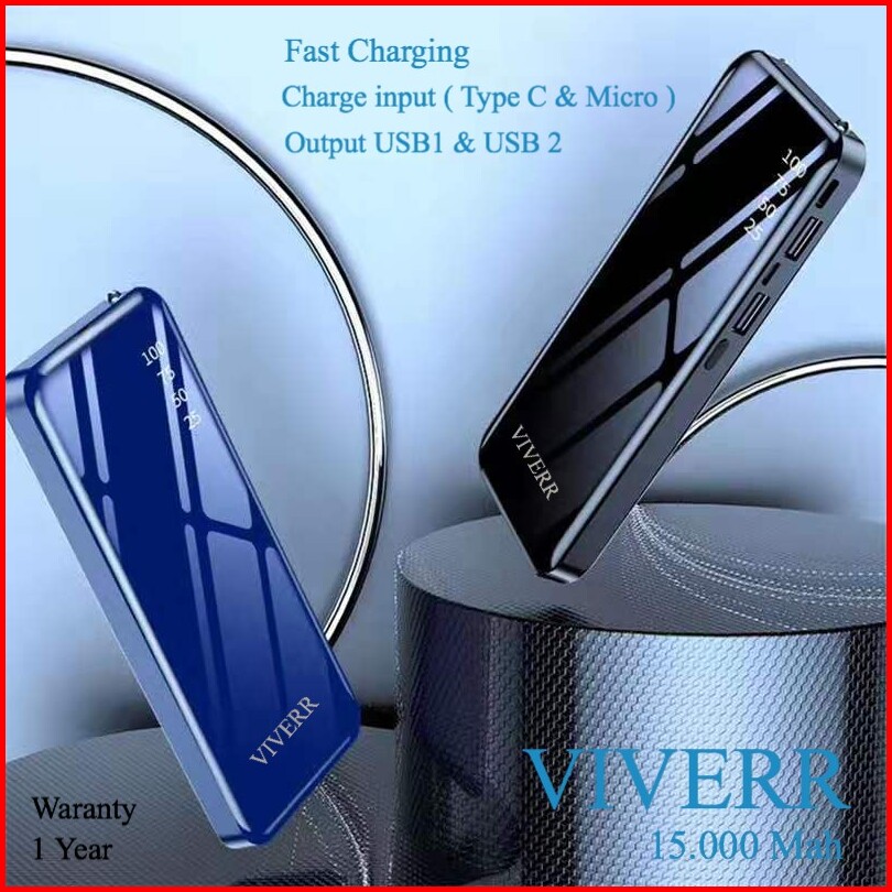 Powerbank Viverr U1 15.000 Mah Led Lampu Resmi 1tahun Small Power Bank Dual Output Murah Berkualitas