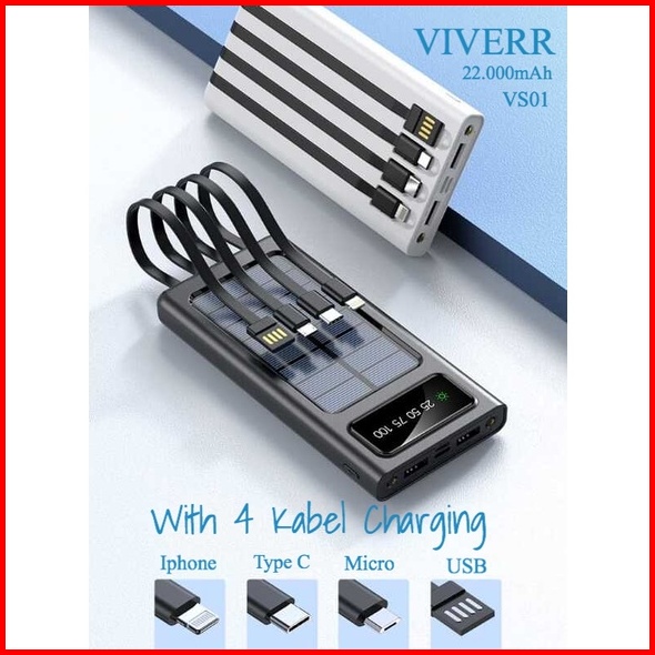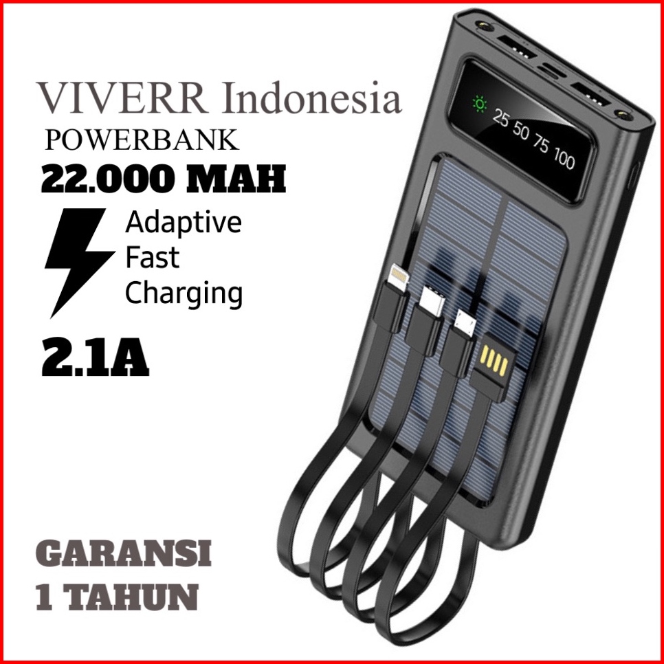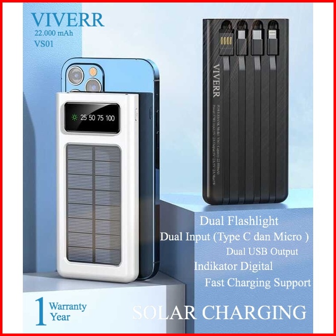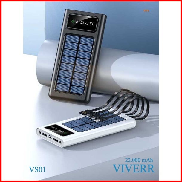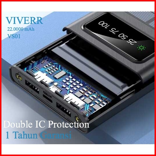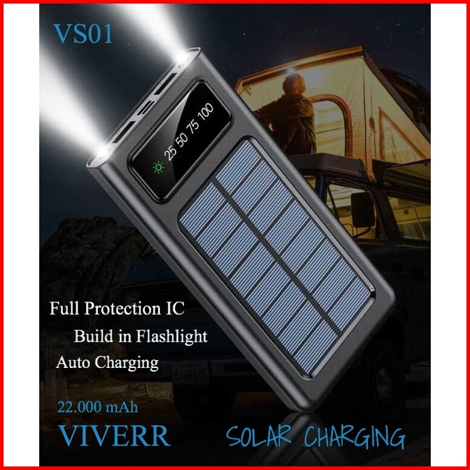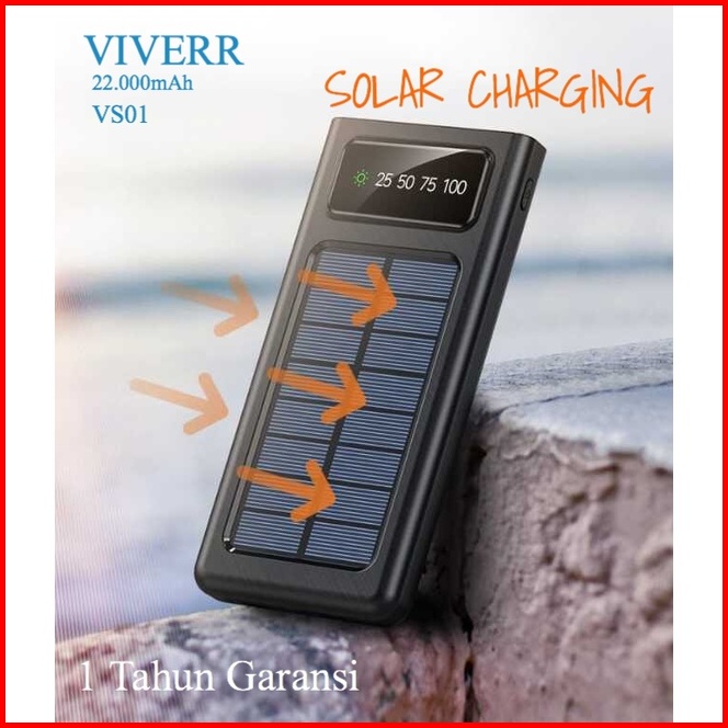 Powerbank Viverr Solar Type Vs01 Kapasitas 22.000 Mah Bisa Mengisi Daya Lewat Matahari Garansi 1 Tahun.