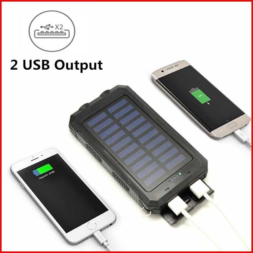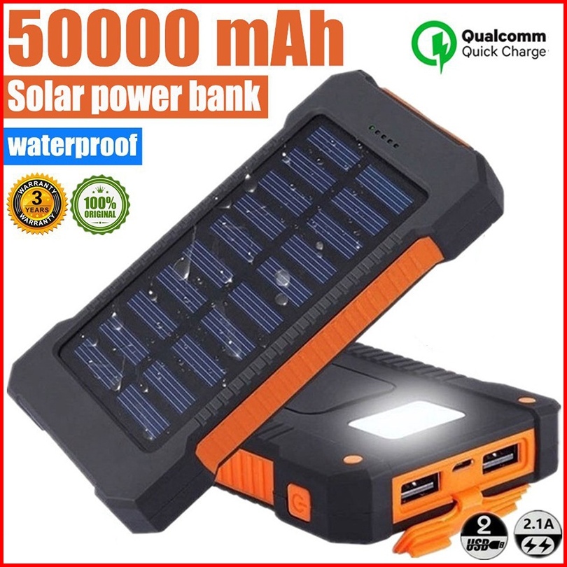 50000 Mah Powerbank Solar Cell Tenaga Matahari Dual Usb Flashlight Daya Ponsel