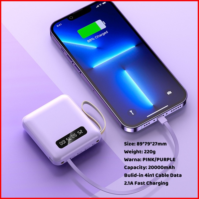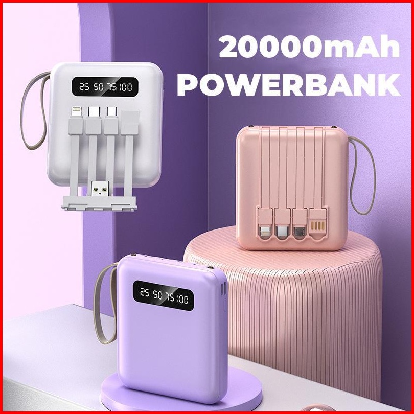 Mini Power Bank 20000mah Portable Powerbank Pawer Bank Original 100 Ori Fast Charging With 4in1 Kabel Data Real Capacity