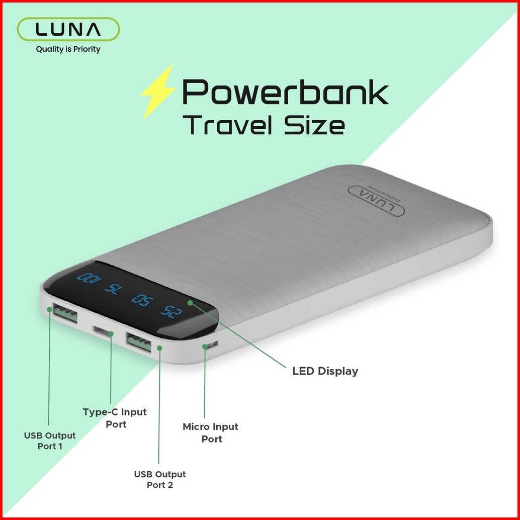 Luna Powerbank 10000 Mah Fast Charging Dual Input Digital Display