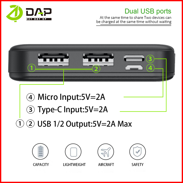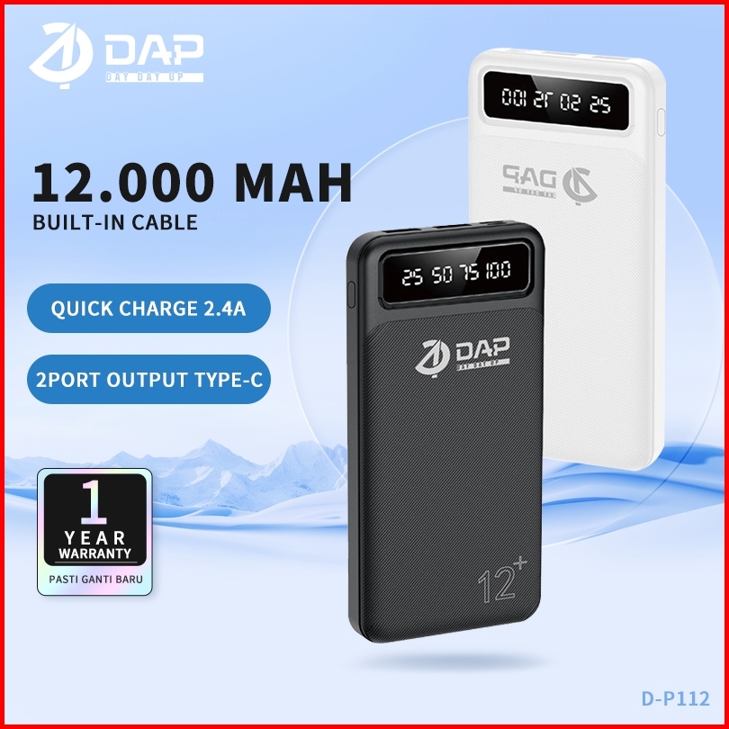Dap D-p112 Powerbank 12000mah 2.4a Dual Input Port Type C 2 Port Usb Power Bank Berkapasitas Besar