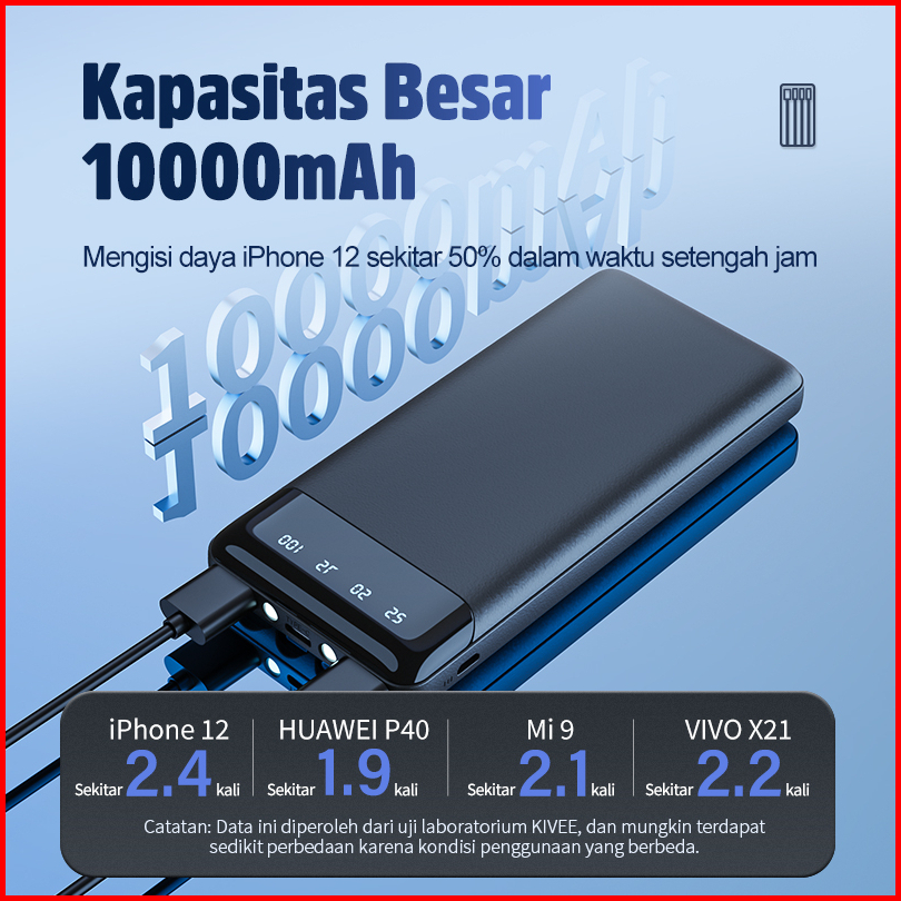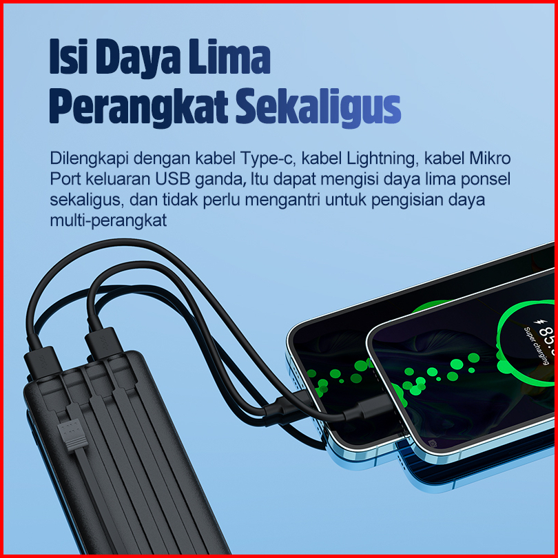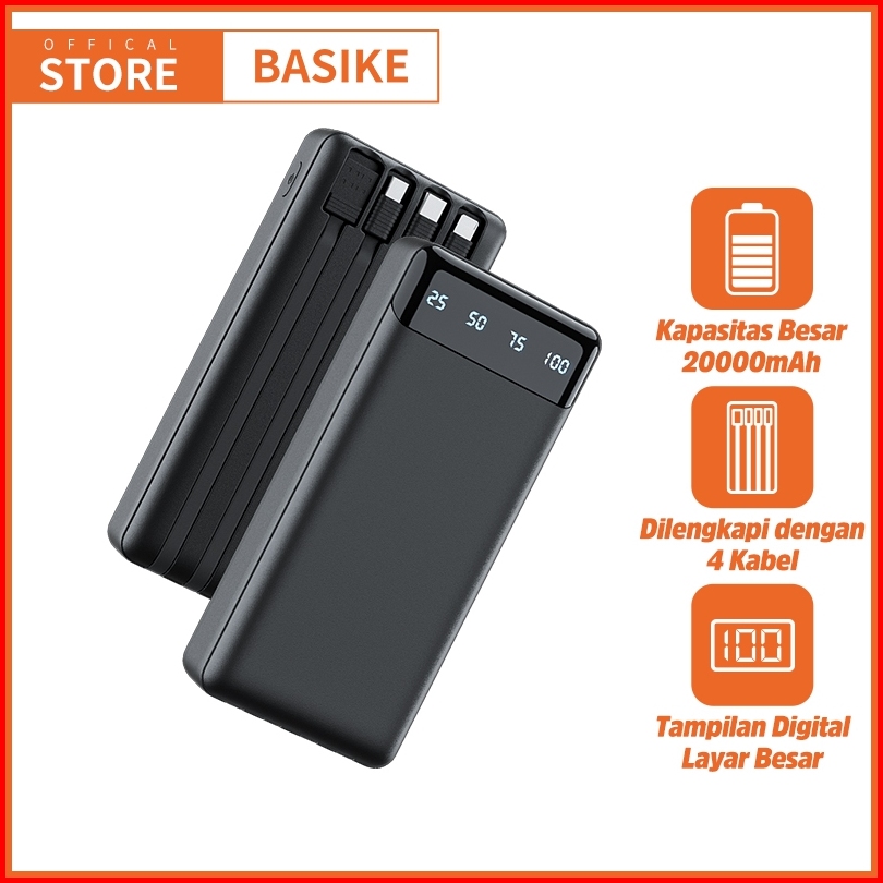 Basike Powerbank Fast Charging 20000 Mah 30000 10000mah Dengan Kabel Data Tipe C Micro Usb Lightning