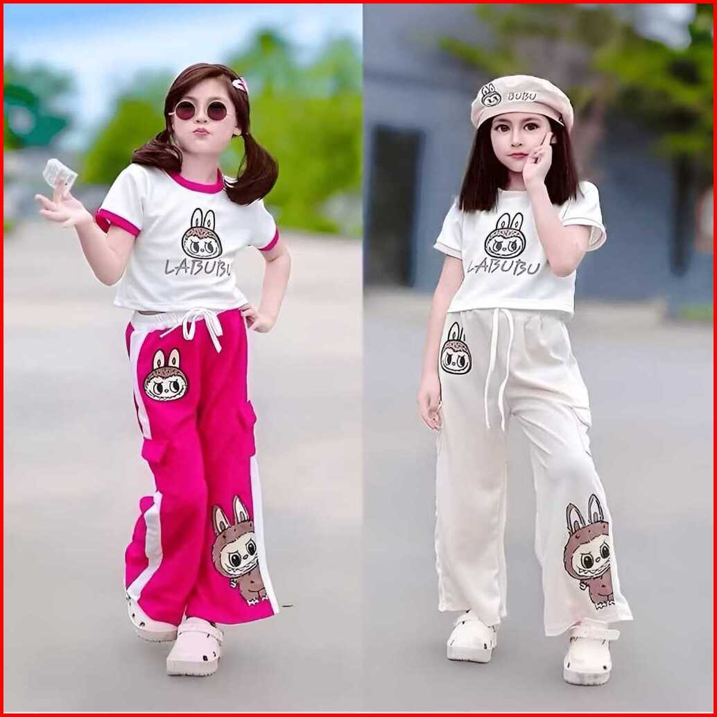 Setelan Baju Crop Top Labubu Anak Perempuan 1-12 Tahun Baju Labubu