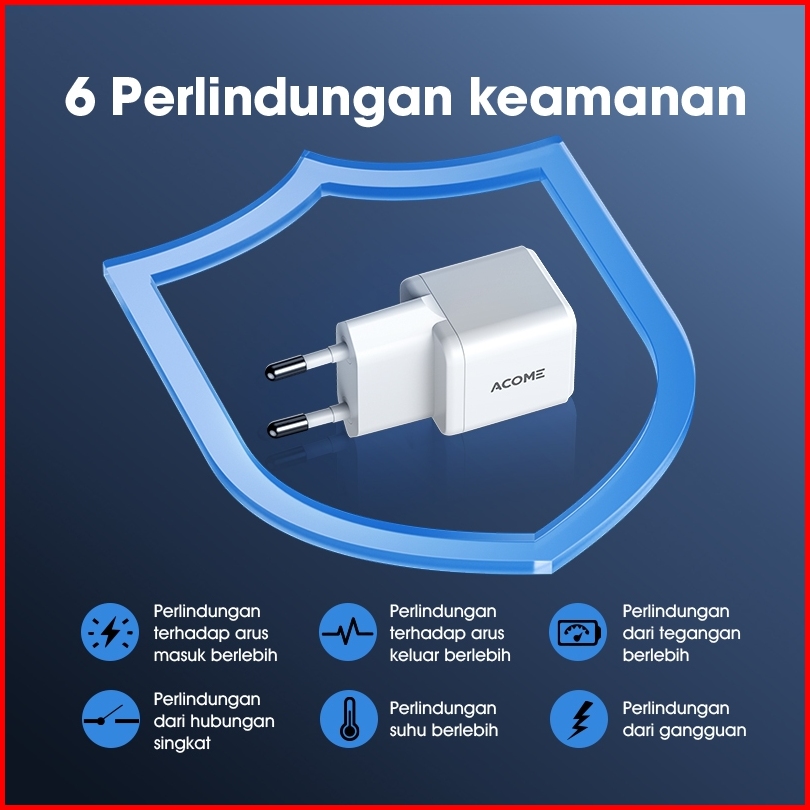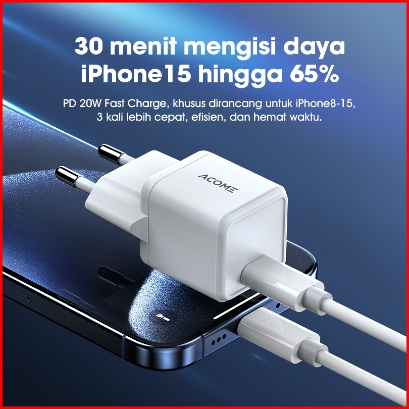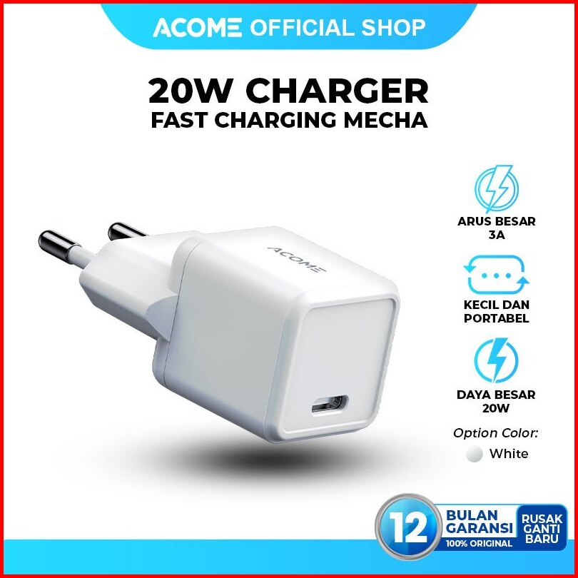 Acome Kepala Charger Ac12 Adaptor Single Port Type-c Pd 20w Fast Charging White Original - Garansi Resmi 1 Tahun