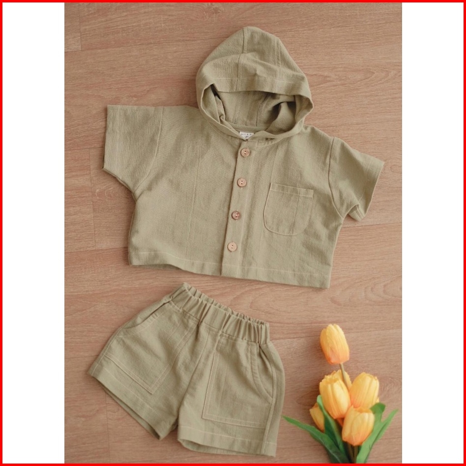 Bell And Bo Setelan Kenna Hoodie Linen Set Setelan Hoodie Bahan Linen 1-4 Tahun