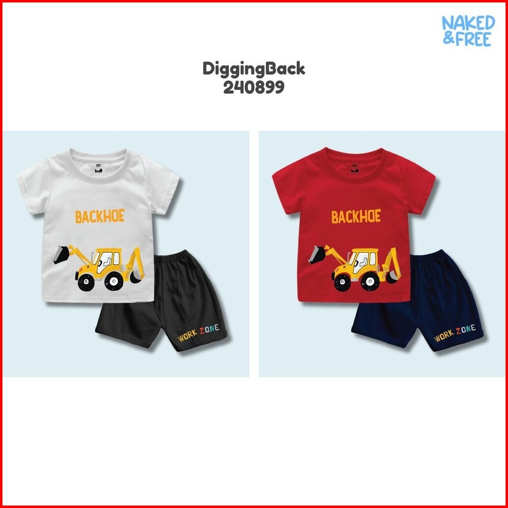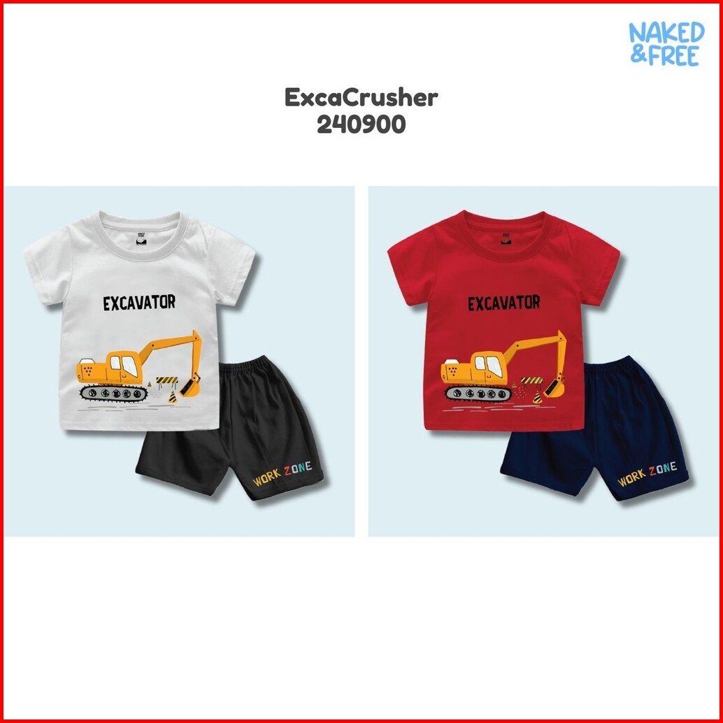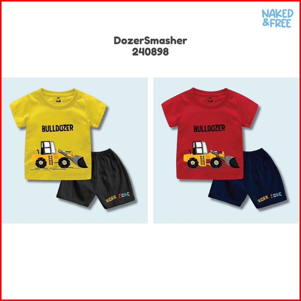 Naked Free Setelan Pendek Bayi Anak Laki-laki Excavator Series Bulldozer Smasher Bahan Katun 30s