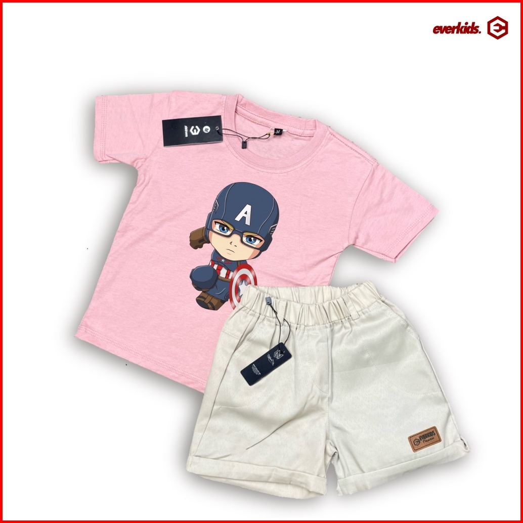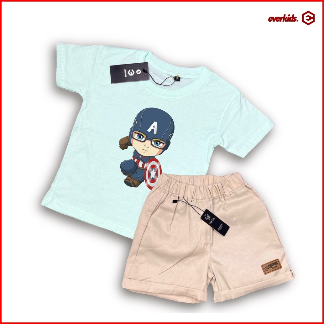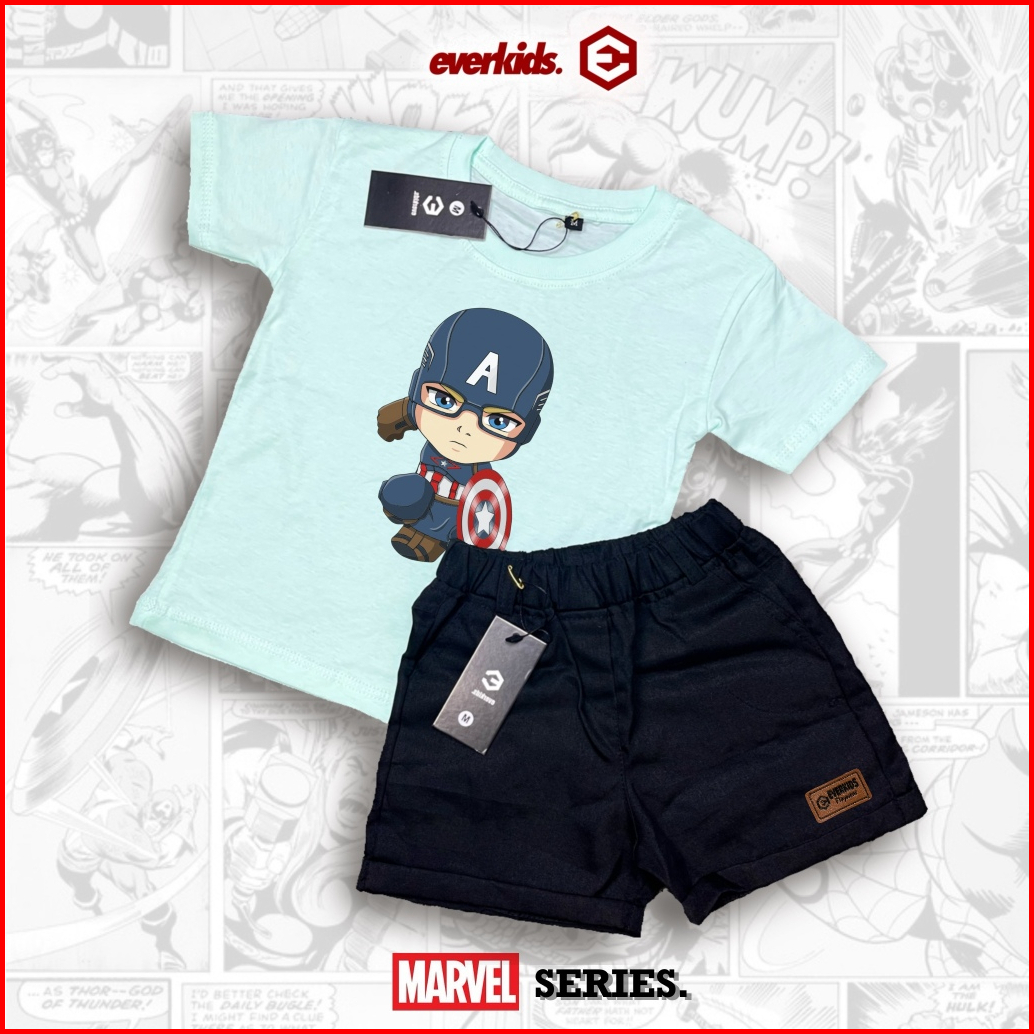 Everkids Setelan Kaos Anak 1-6 Thn Sablon Keren Kaos Anak Marvel Kd 33