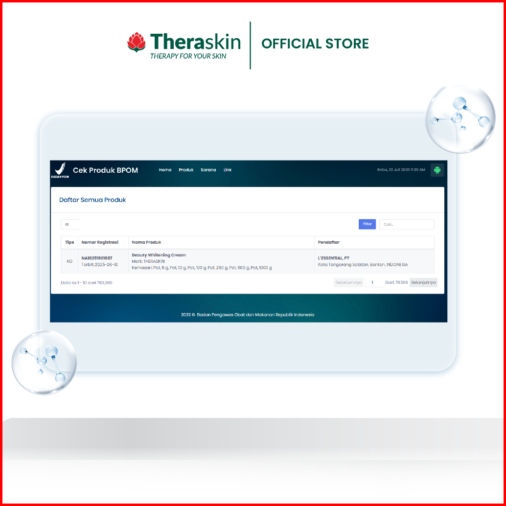 Theraskin Bpom Beauty Whitening Cream 10g - Krim Pagi Malam Dengan Niacinaminde Dan Alpha Arbutin